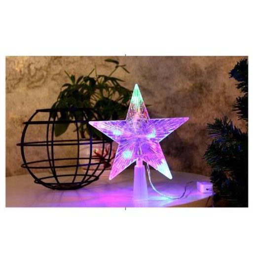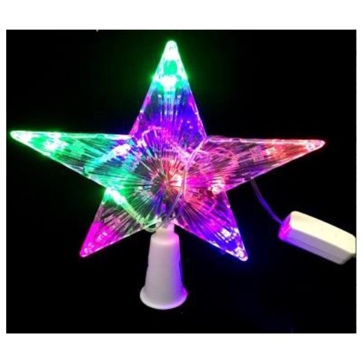 CHRISTMAS TREE TOP TOPPER STAR LED HANGING LIGHT XMAS DECOR GLITTER FIVE POINTED STAR (FLASH)