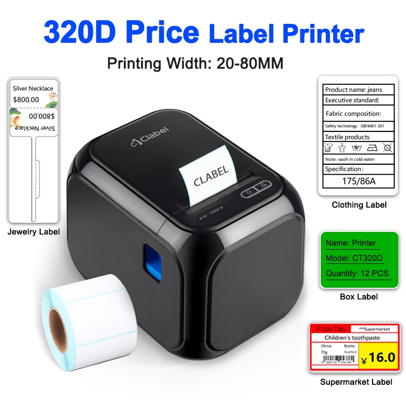 CLABEL Portable Thermal Label Printer 320D/321D Support Receipt Thermal Paper Printing USB Computer Bluetooth Printing