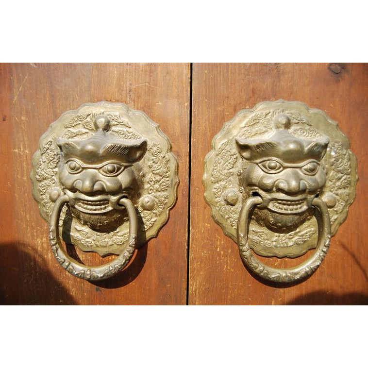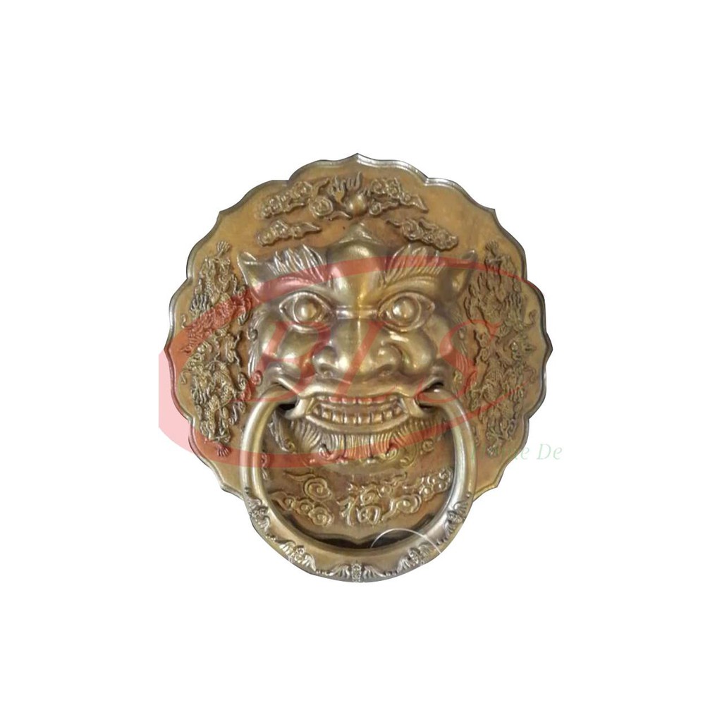 CLASSIC ANTIQUE BRASS CROSS LION DOOR KNOCKER DIAMETER 18 CM