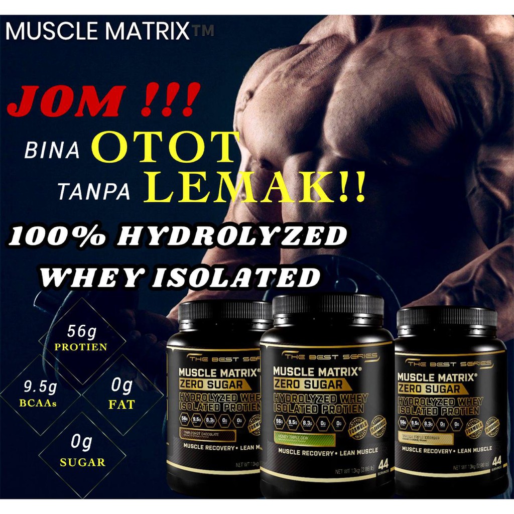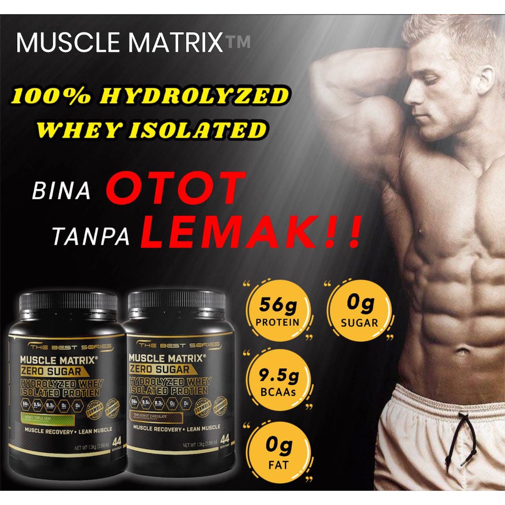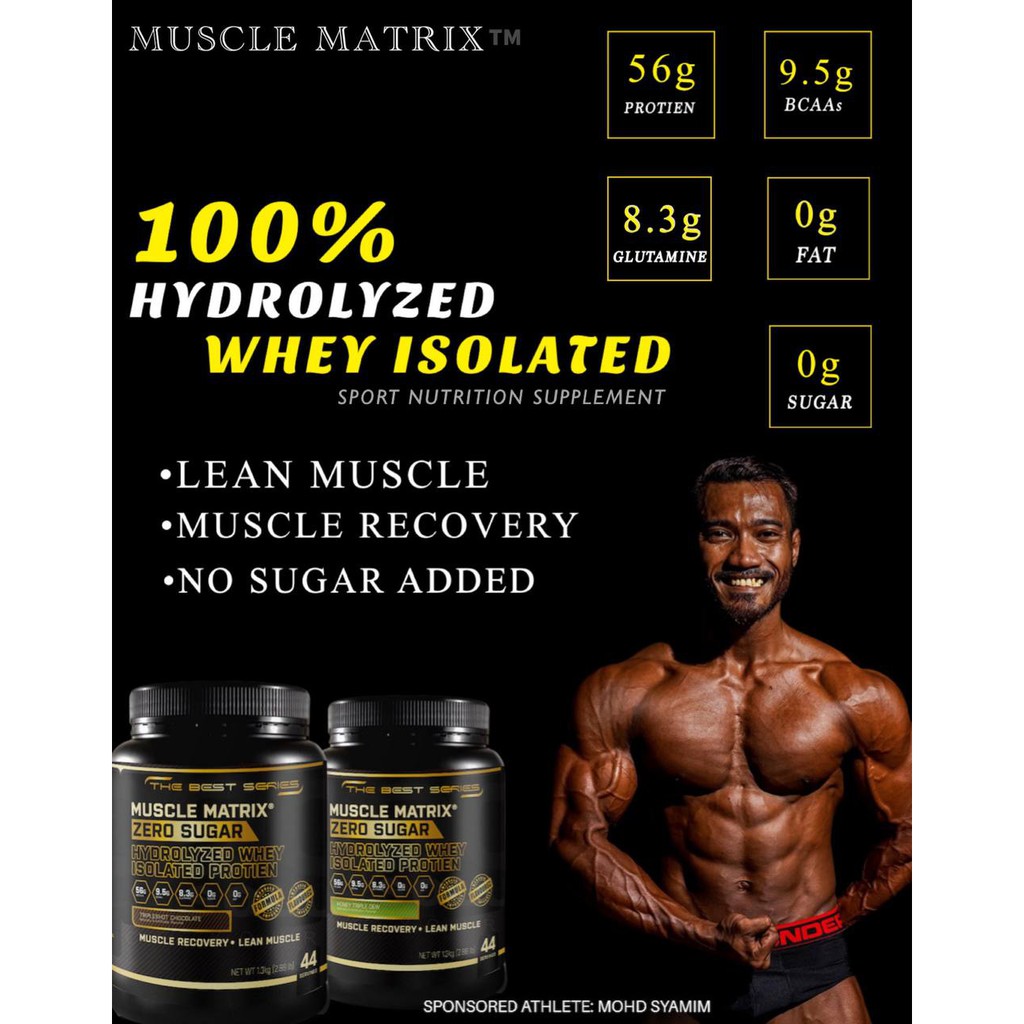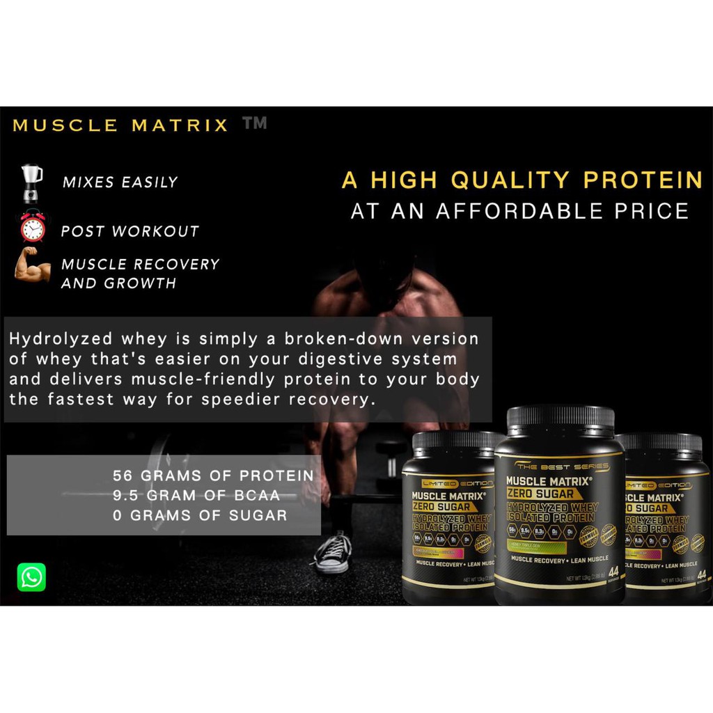 CLEARANCE!! MUSCLE MATRIX Whey Protein Zero Sugar Hydrolyzed 1.3kg 44 Servings Muscle Growth Guaranteed!
