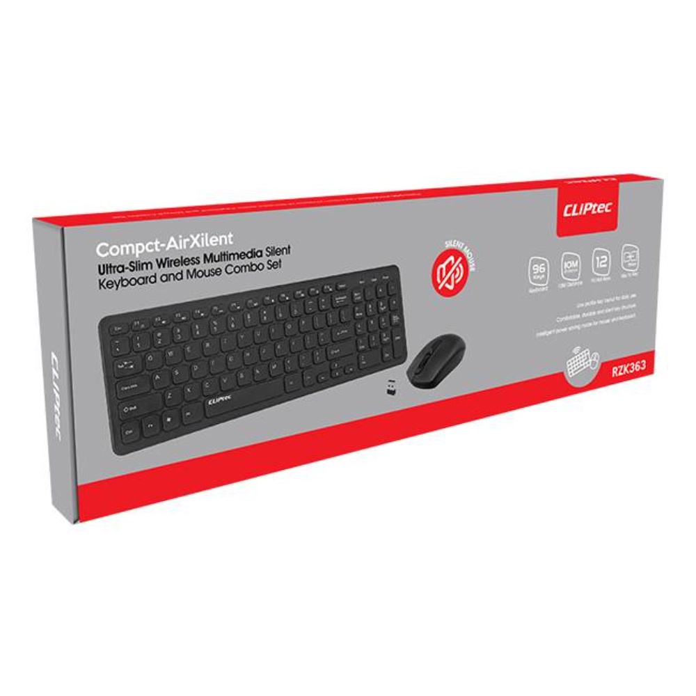 CLIPTEC RZK363 Compact-Airxilent Ultra-Slim Wireless Multimedia Silent Keyboard And Mouse Combo Set