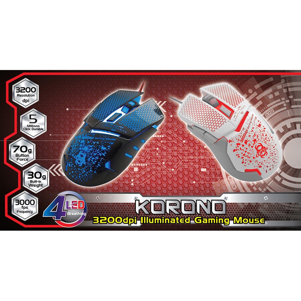 CLiPtec RGS565 Korono 3200 DPI Illuminated Wired Gaming Mouse