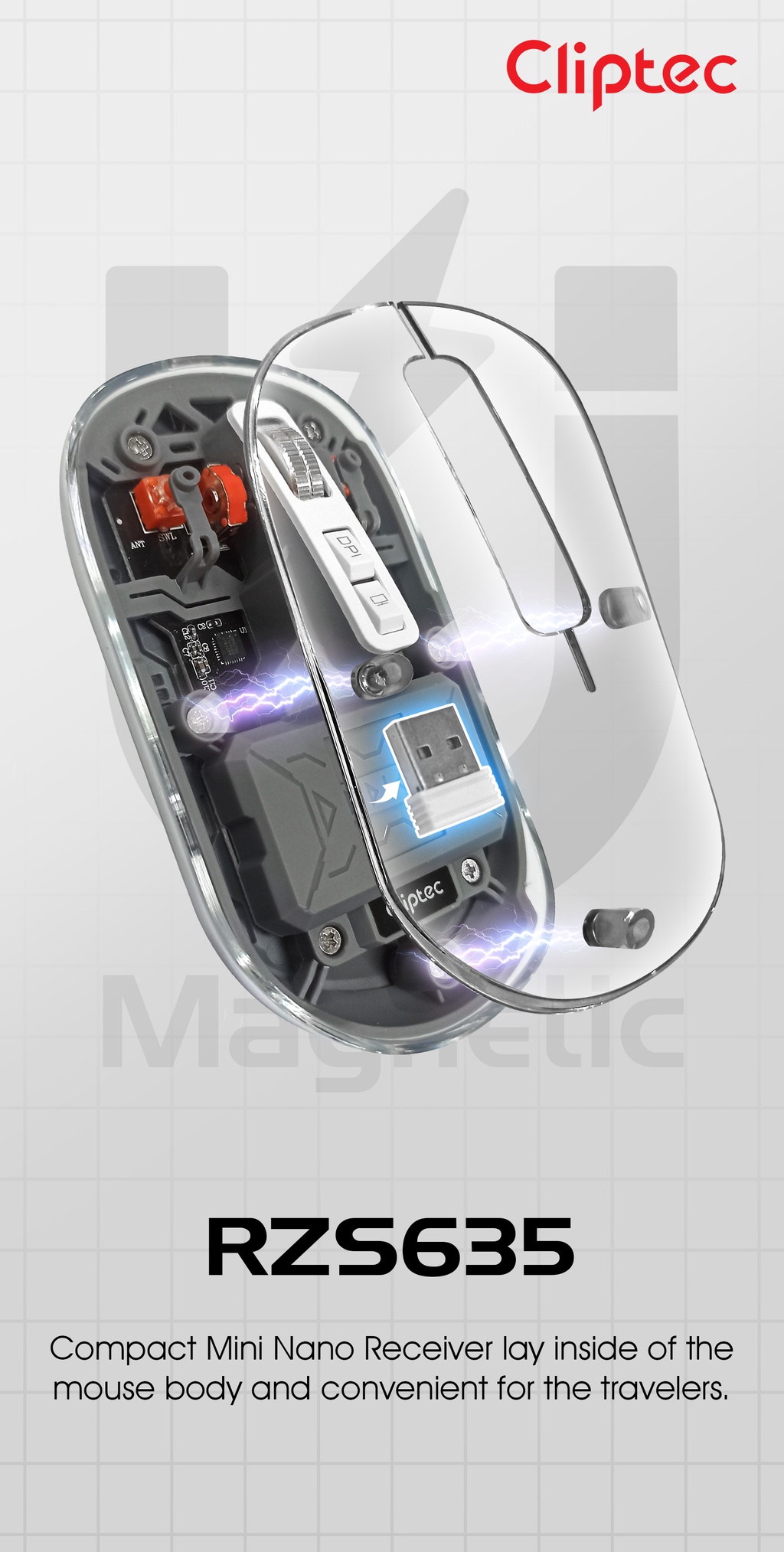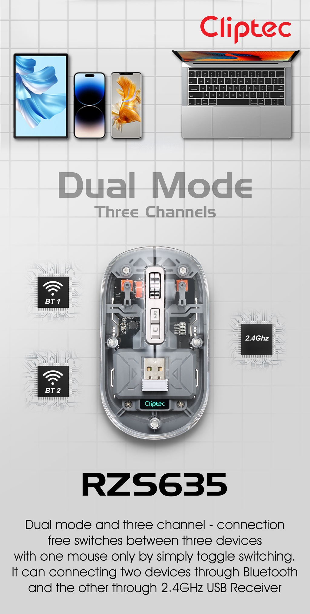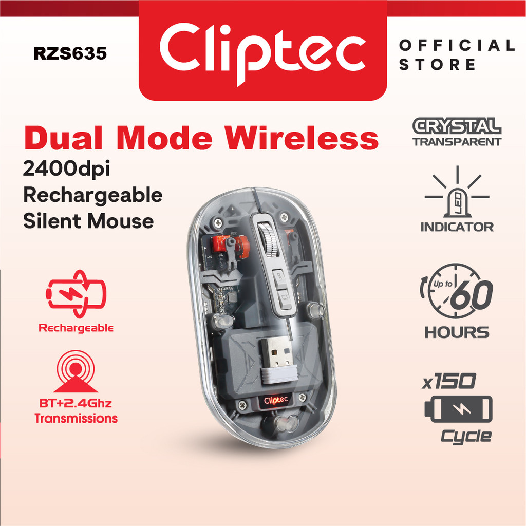 CLiPtec RZS635 Dual Mode 2400dpi Transparent Rechargeable Silent Wireless Mouse