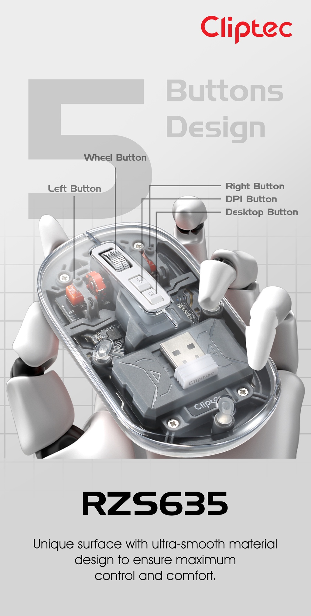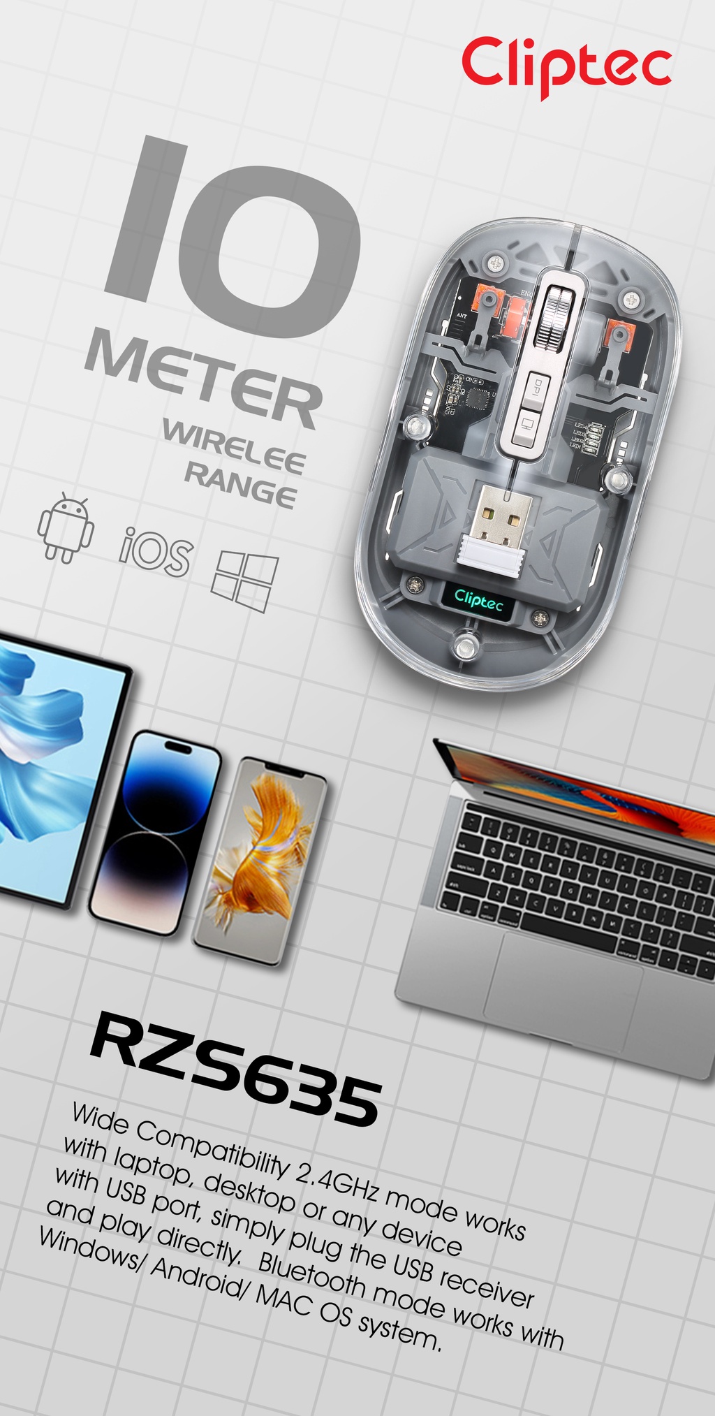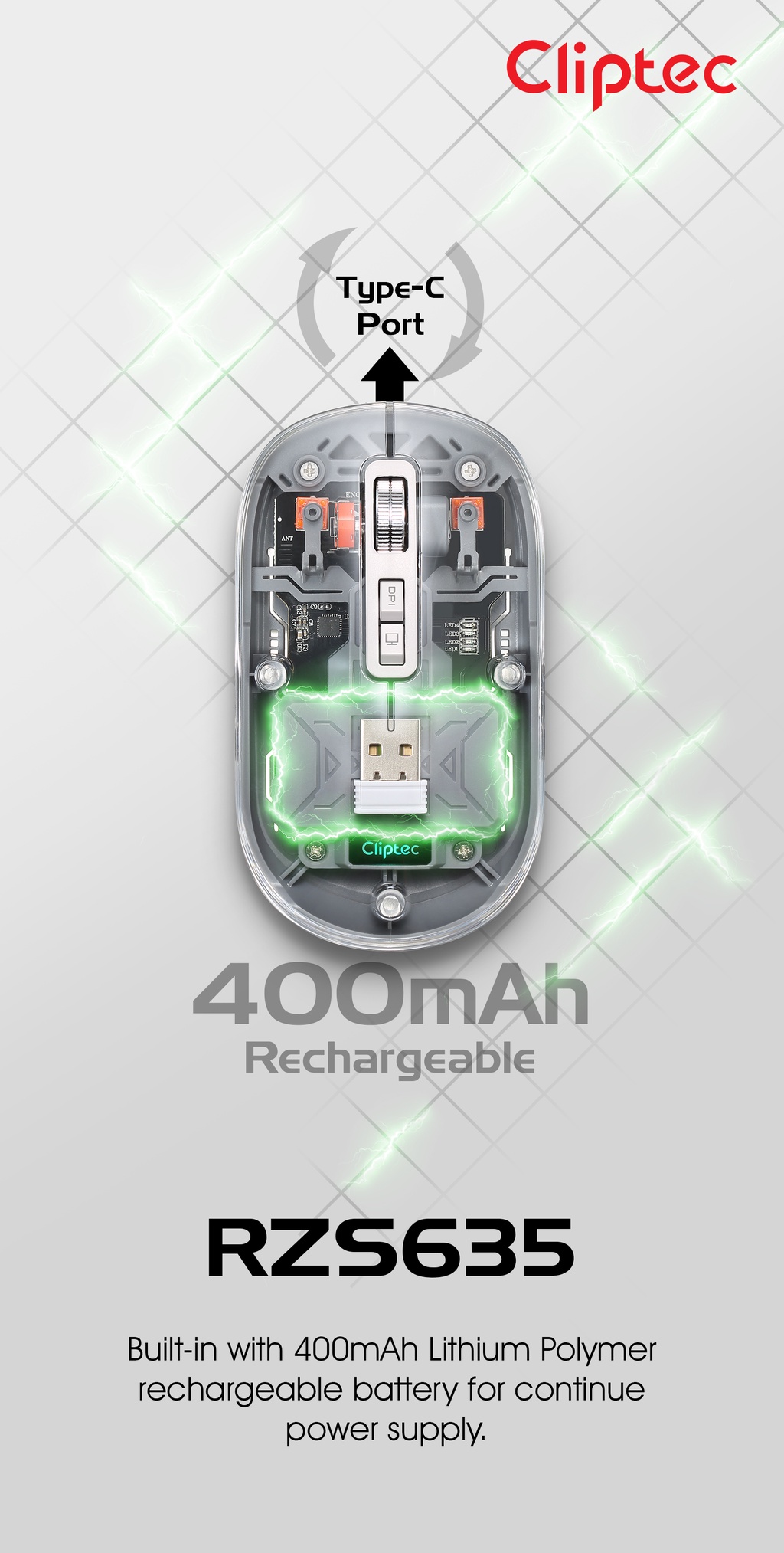 CLiPtec RZS635 Dual Mode 2400dpi Transparent Rechargeable Silent Wireless Mouse
