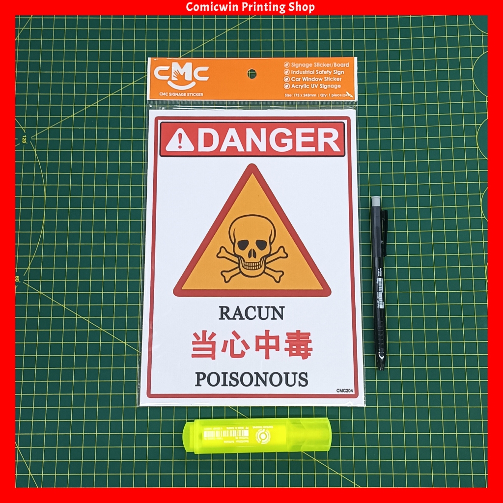 CMC204 Danger Sign Sticker Poisonous (24.5x17.5cm) Hati Hati Racun Beware of Poison Dangerous Area,Add on Board