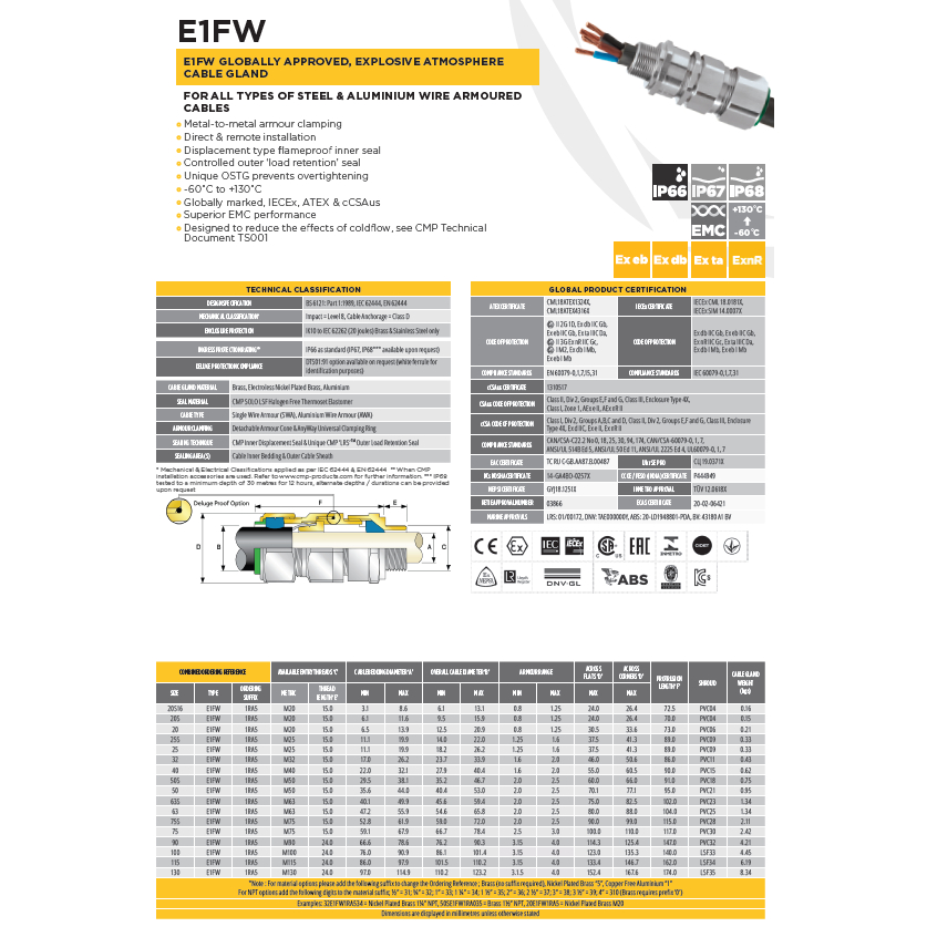 CMP E1FW Exd Exe Cable Gland c/w Locknut, Earth Tag, Nylon Washer & PVC Shroud (Set)