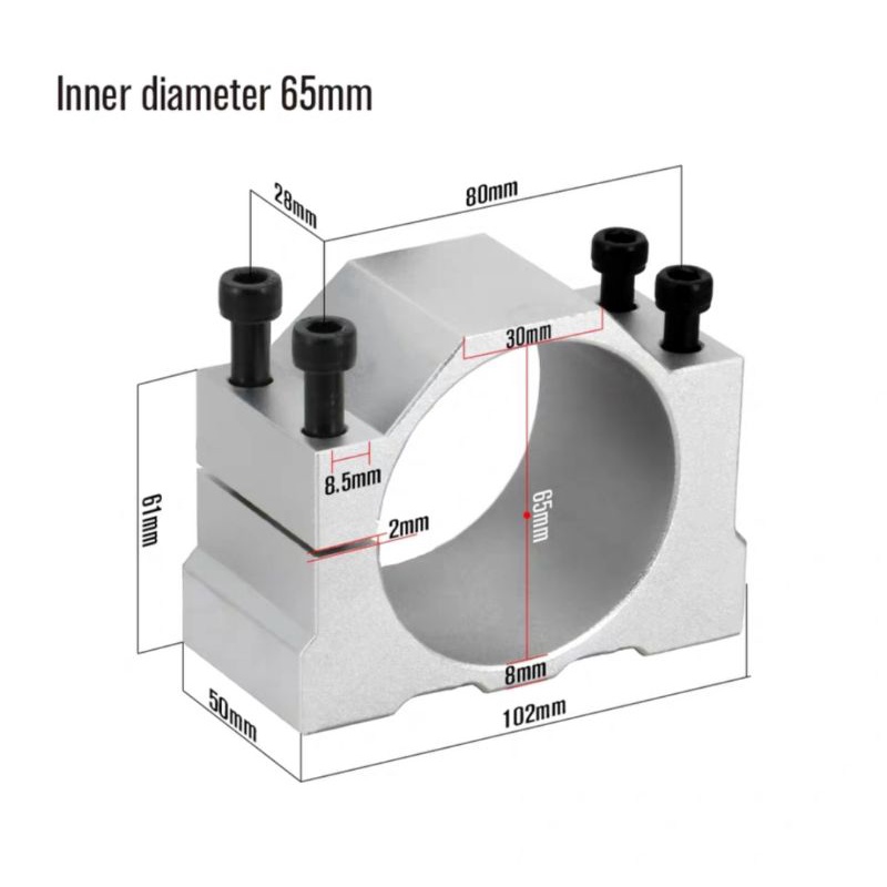 CNC spindle motor bracket diameter 65mm Aluminum clamp with 4 Hexagon socket bolts