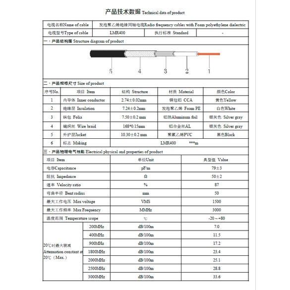 COAXIAL CABLE LMR-400 Low Loss Equivalent Coaxial Jumper Cable FOE REPEATER AND SIGNAL CABLE LMR400