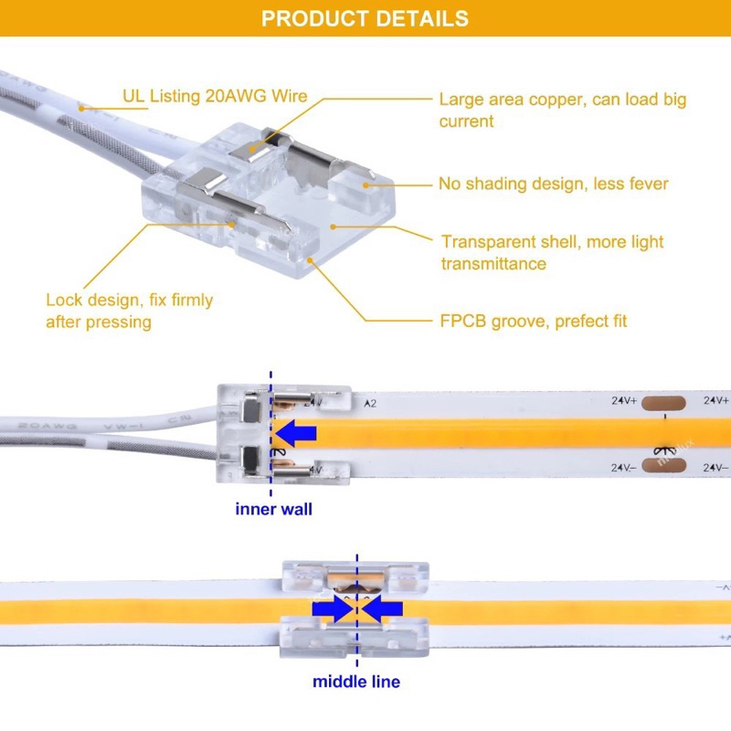 COB LED FLEXIBLE STRIP JOINT 8MM 2PIN CONNECTOR