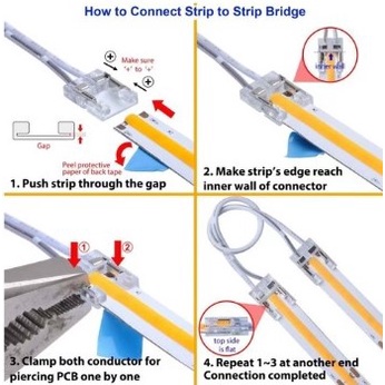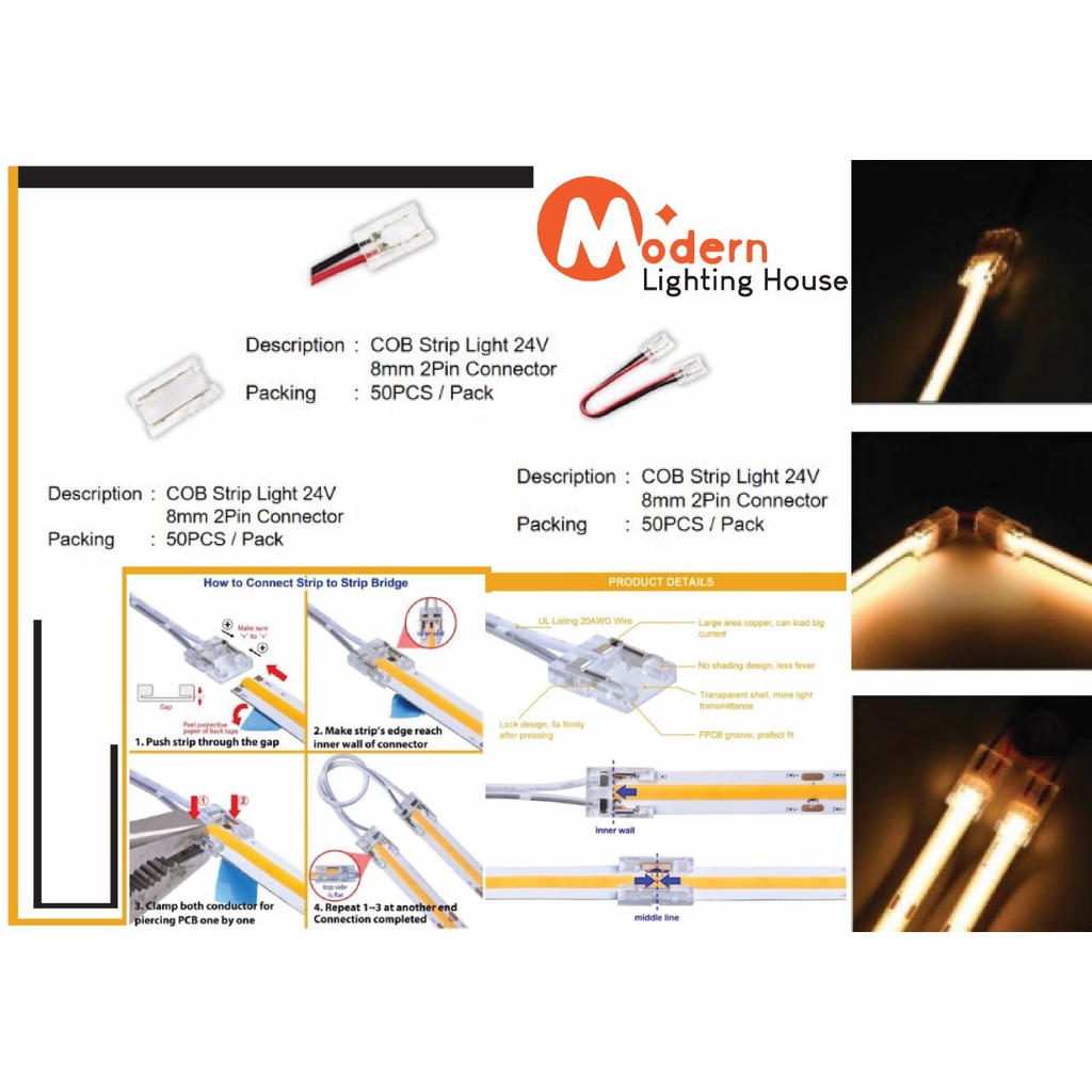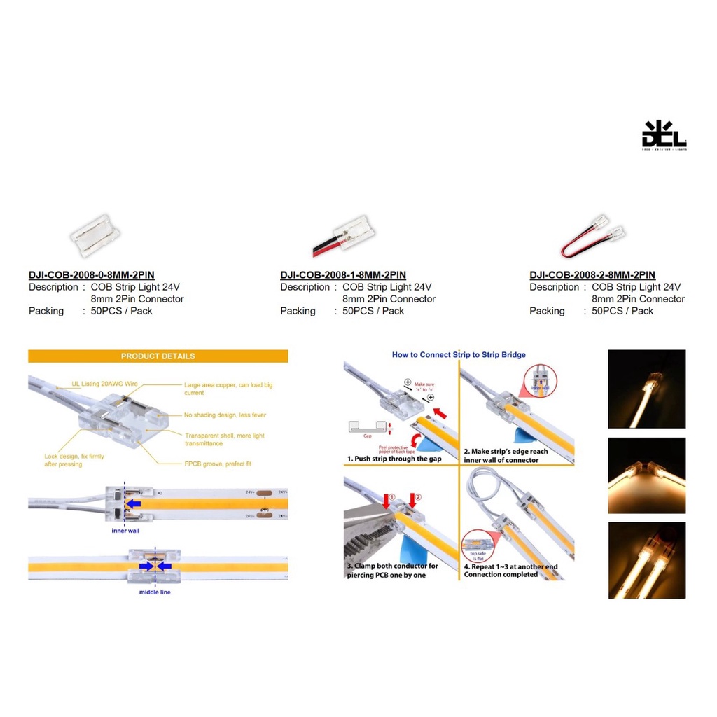 COB LED Strip Connector L Shape Corner Connectors for 8mm 2pin SMD COB 5050 2835 Single Color Tape Lights Fixed Clamps