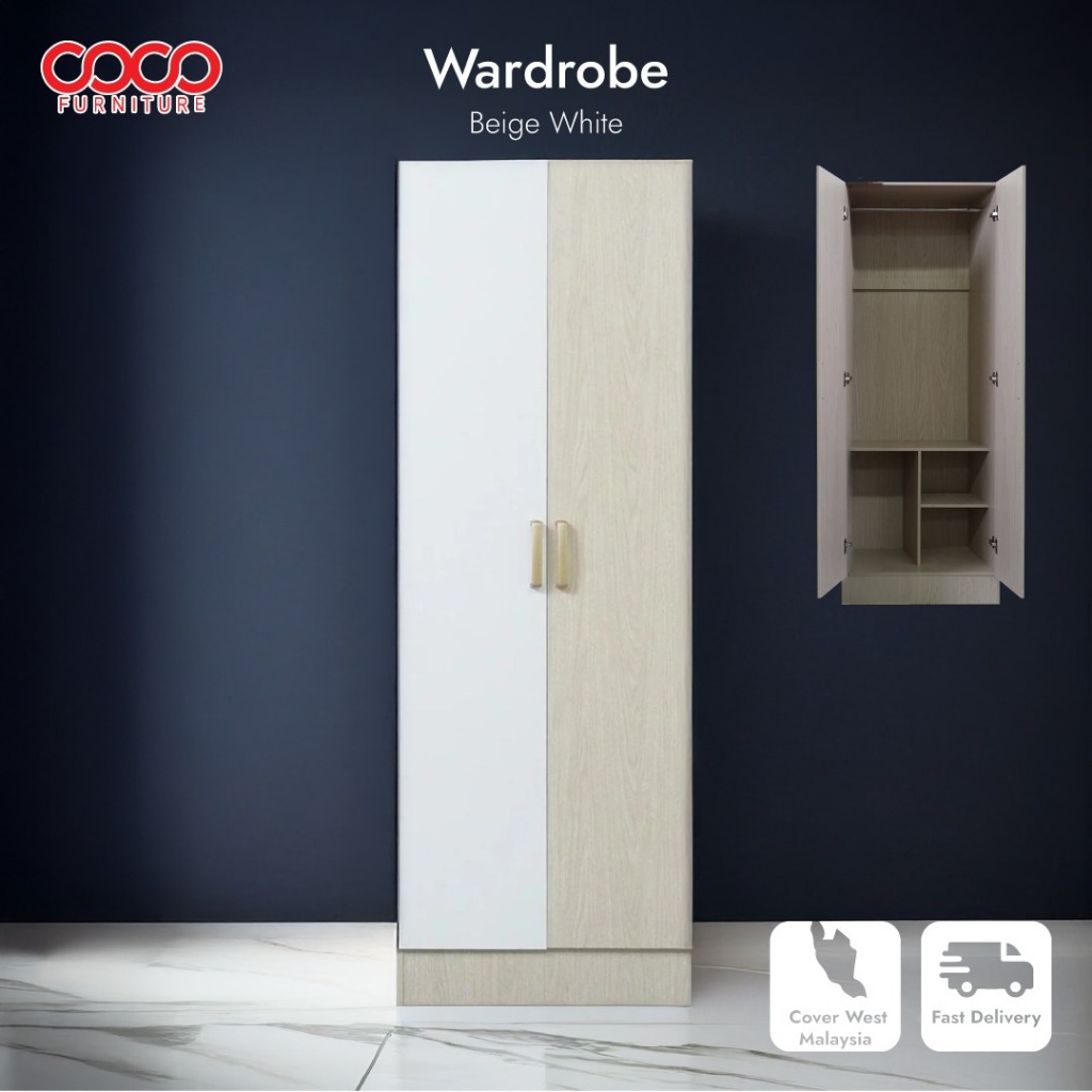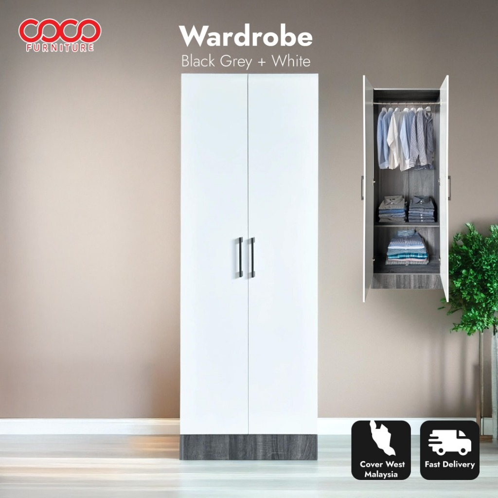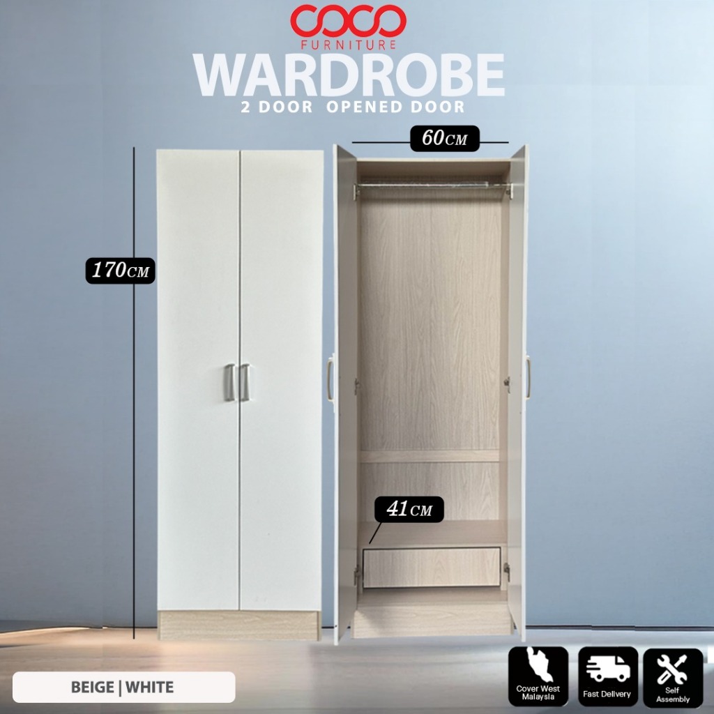 COCO / 2Door Wardrobe 2 Pintu Almari Murah / Almari Pakaian / Almari Baju / Almari Besar / Kabinet Baju / Ready Stock