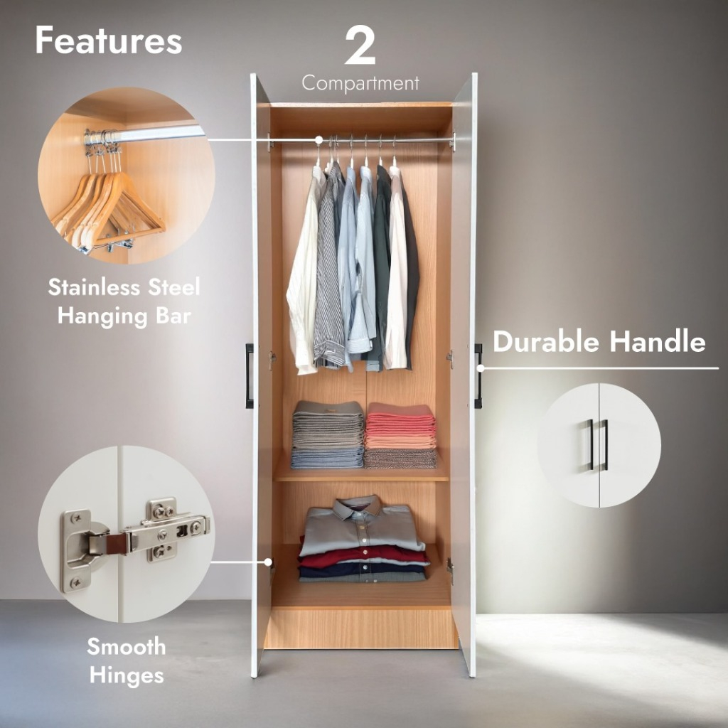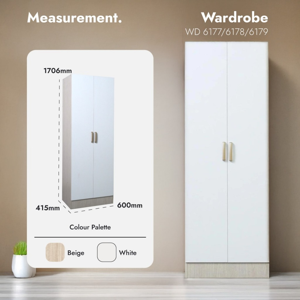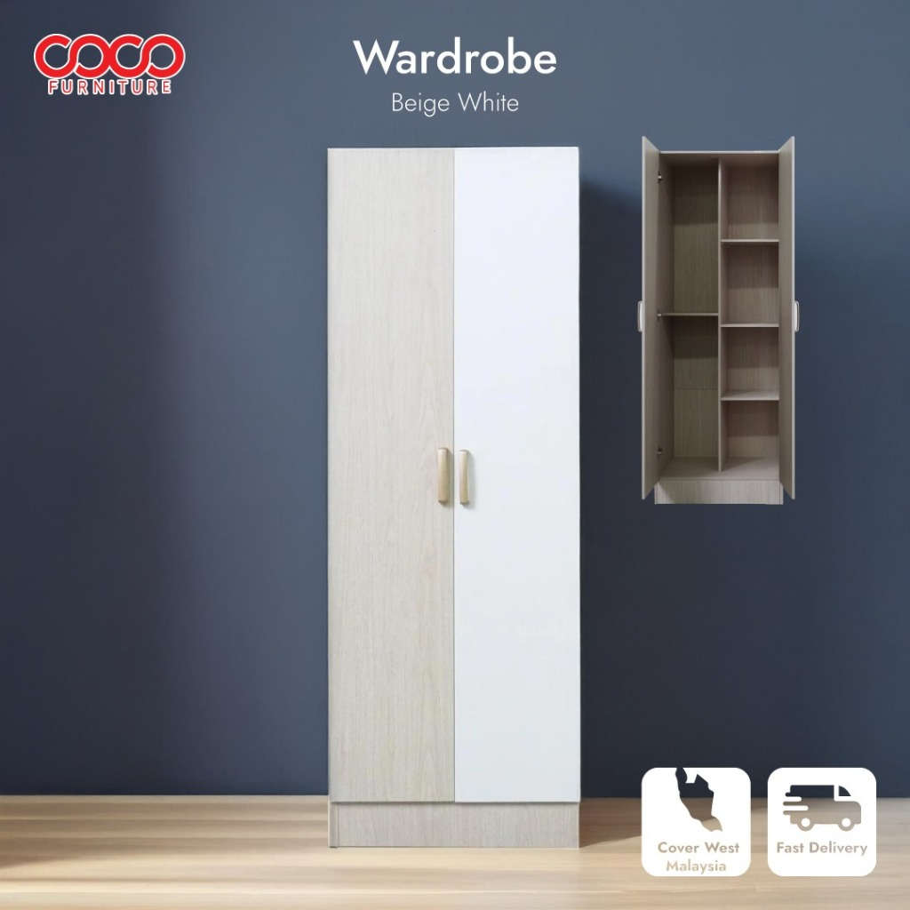 COCO / 2Door Wardrobe 2 Pintu Almari Murah / Almari Pakaian / Almari Baju / Almari Besar / Kabinet Baju / Ready Stock