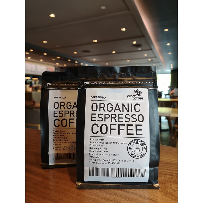 COFFEEMAX 100% Organic Espresso Coffee Bean 250g Whole Coffee (Imported) Quality Premium For Coffee Shop & Home