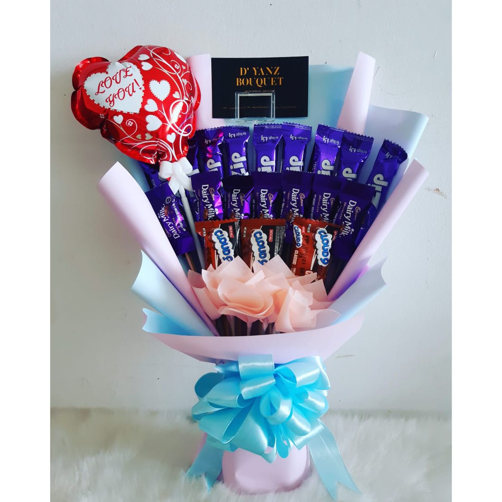 COKLAT BOUQUET MINI CADBURY WITH CLOUD9 BAJET MURAH ESKLUSIF HARI GURU HARI HARI JADI BIRTHDAY GIFT MINI BOUQUET