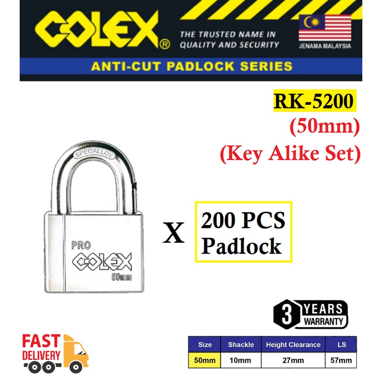 COLEX 200 PCS 40mm 50mm RK-4200 RK-5200 Anti Cut Series PadLock Kunci Mangga Heavy Duty Keyed Alike Set