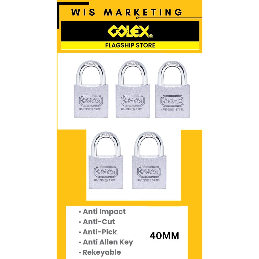 COLEX 40mm poxy Coated Standard Steel Padlock Long Shackle Padlock (5PCS) ZK405