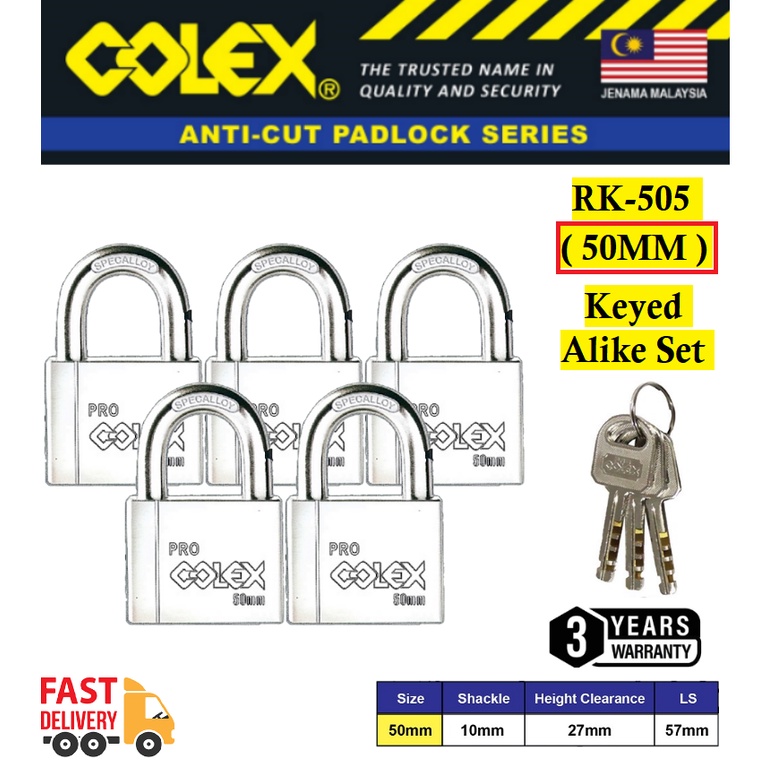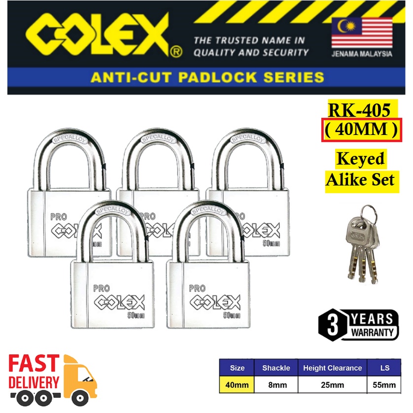 COLEX 5 PCS 40mm 50mm RK405 RK505 Anti Cut Series PadLock Kunci Mangga Rumah dll.. Heavy Duty
