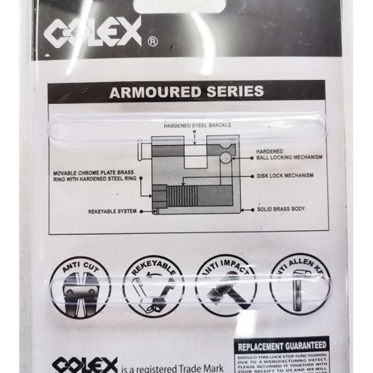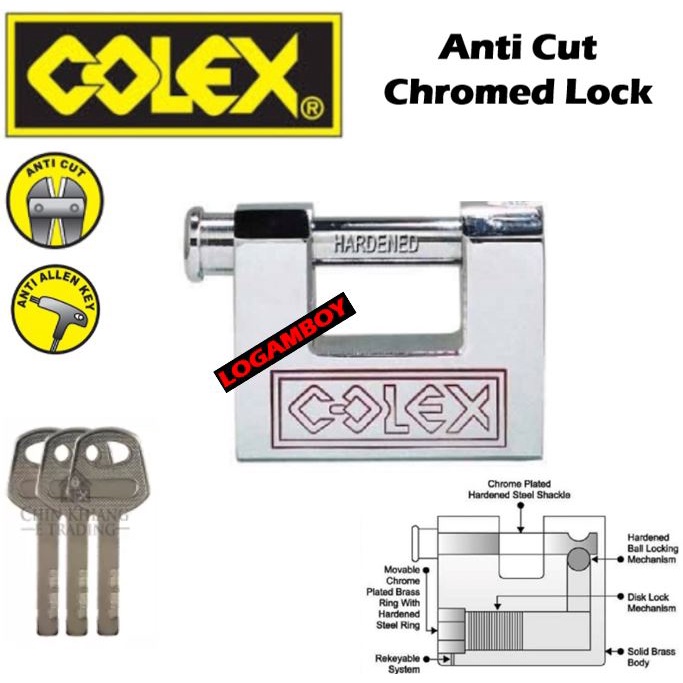 COLEX LOCK BRASS PADLOCK TEMBAGA MANGGA ANTI CUT ALLEN KEY CHROMED LOCK PADLOCK 50MM HORIZONTAL DA501