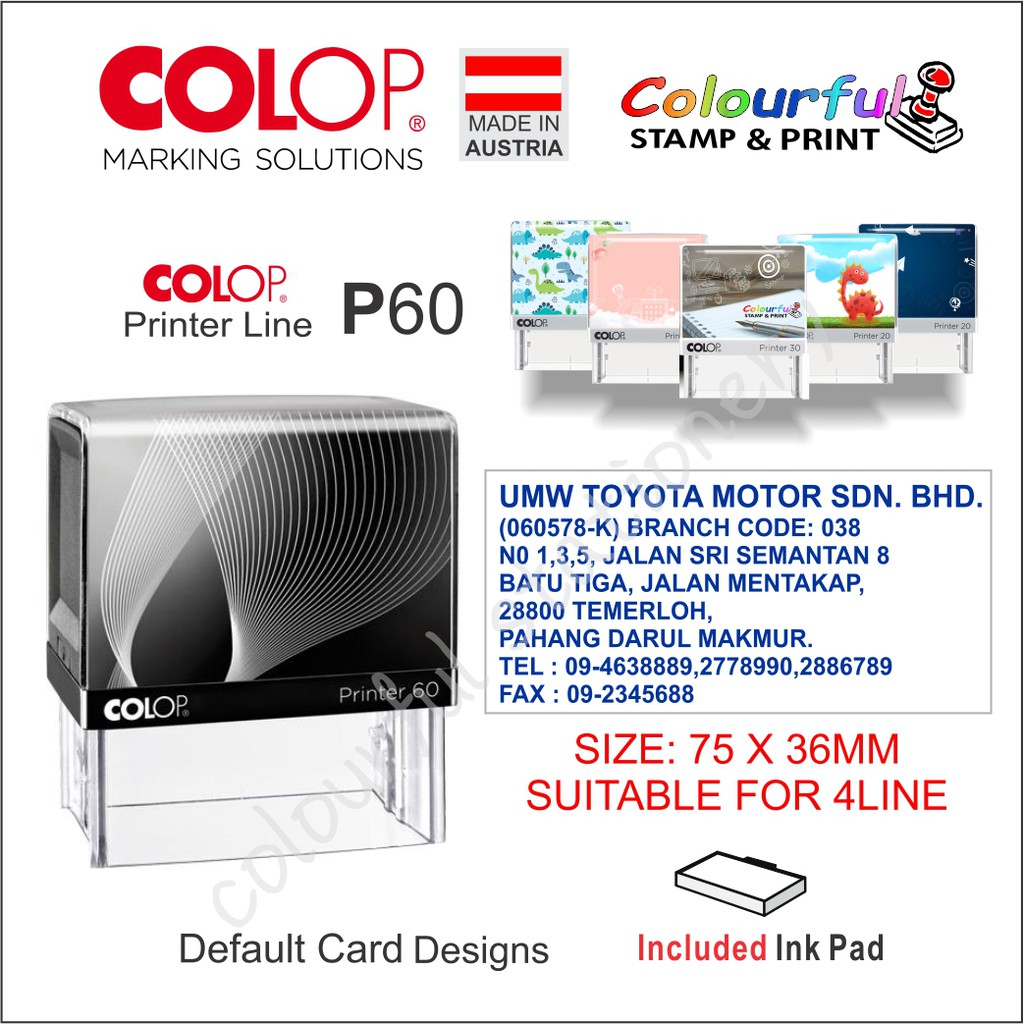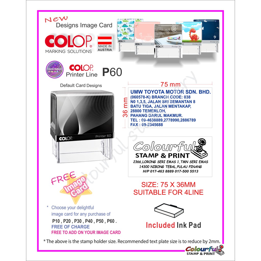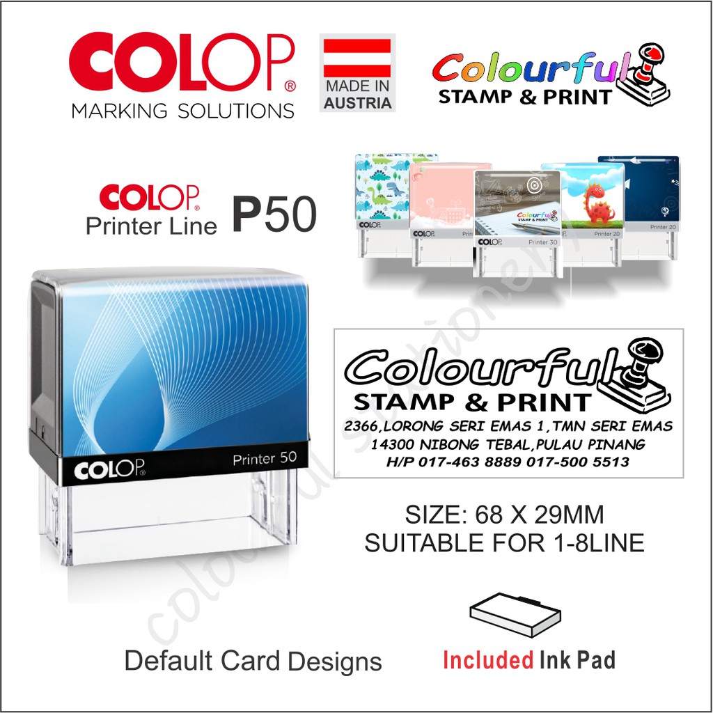 COLOP New Personalized Self-Inking Rubber Stamp Chop P50 P60.
