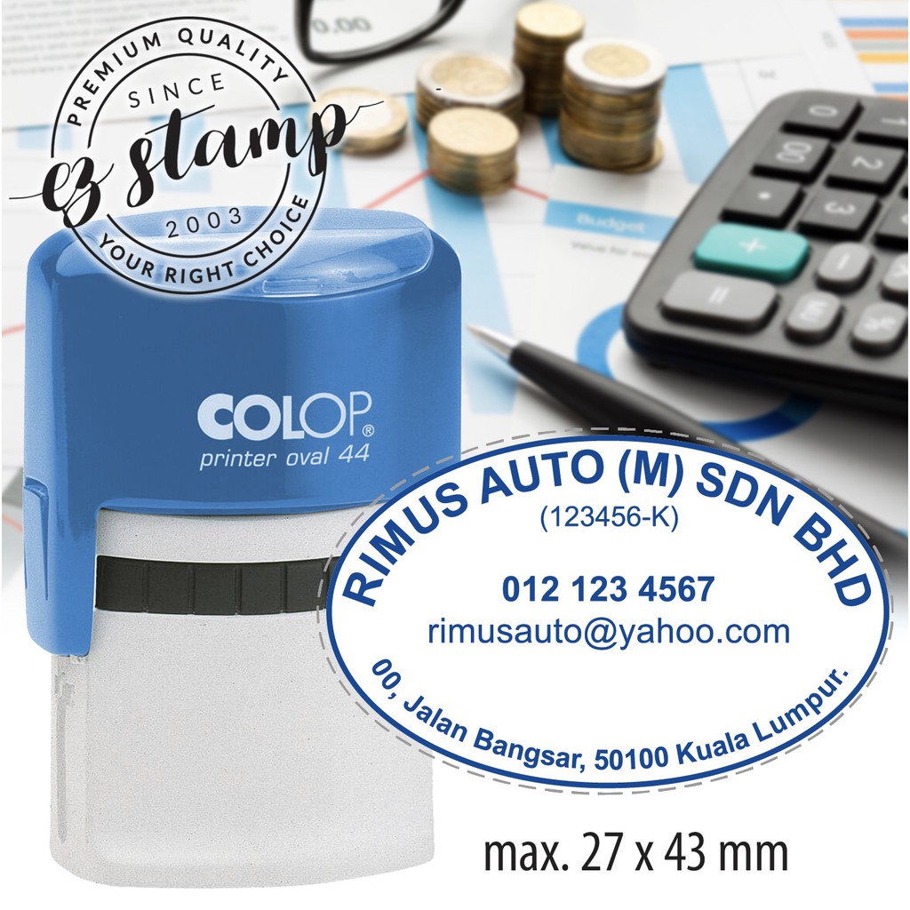 COLOP Printer Oval 44 Custom Text. RED RUBBER. (27 x 43mm) Oval stamp, ideal for logos