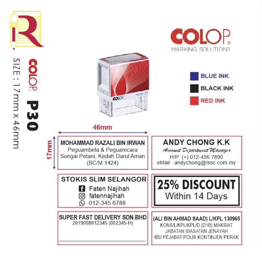 COLOP SELF-INKING CUSTOM MADE P10/P20/P30/P40/P50/P60 I RUBBER STAMP I COP GETAH
