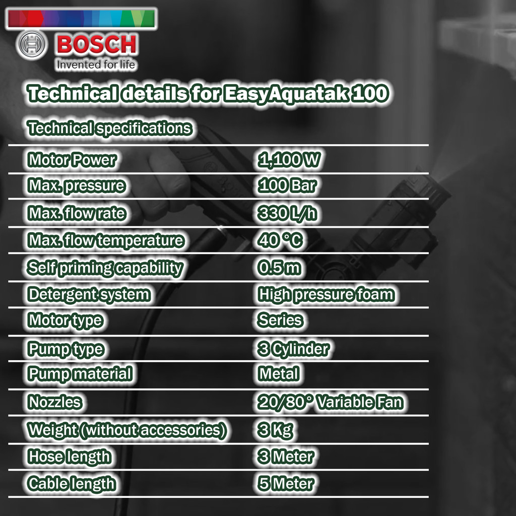 COMBO BOSCH EASY AQUATAK 100 HIGH PRESSURE CLEANER 1100W 100 BAR EASYAQUATAK 100