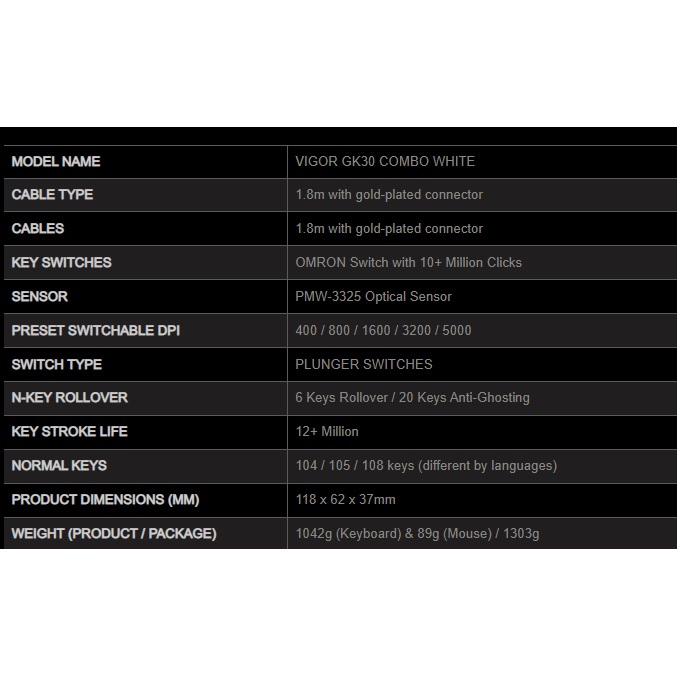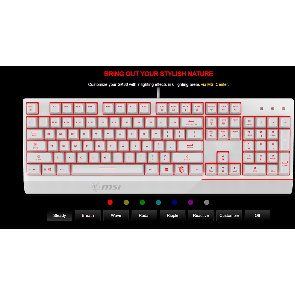 COMBO / MSI VIGOR GK30 AND GM11 GAMING KEYBOARD+MOUSE / USB WIRED / WHITE / 1YR /
