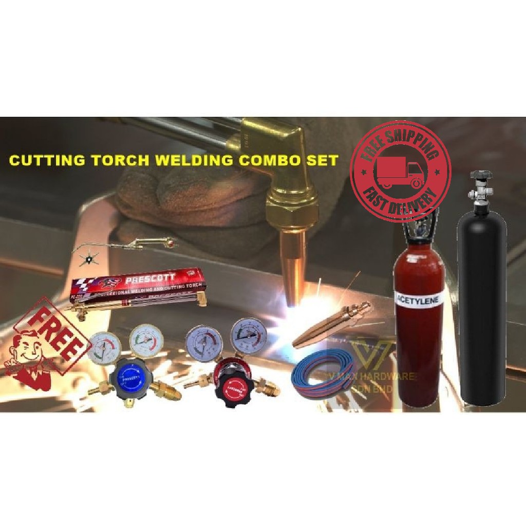 COMBO SET CUTTING TORCH & WELDING TORCH WITH Acetylene cylinder & Oxygen cylinder **INC GAS**
