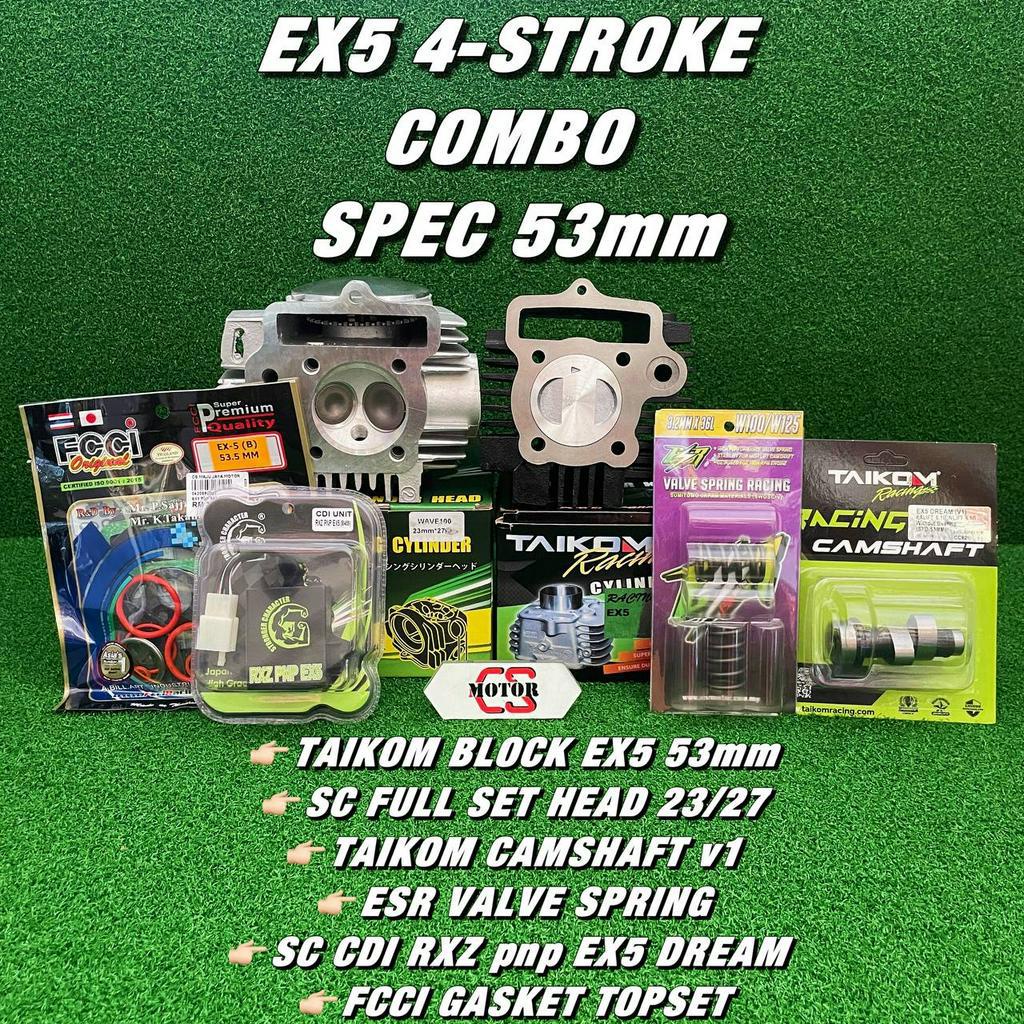 COMBO SET EX5 HIGH POWER 53MM TAIKOM BLOCK 53MM HEAD 23 27 FULL SET CAMSHAFT HIGHWAY RXZ PNP EX5 CDI ESR VALVE SPRING RK
