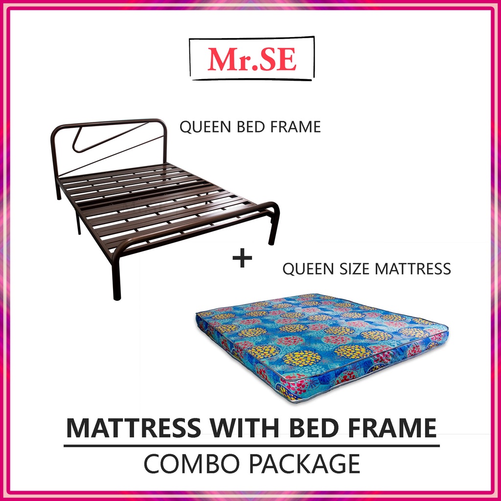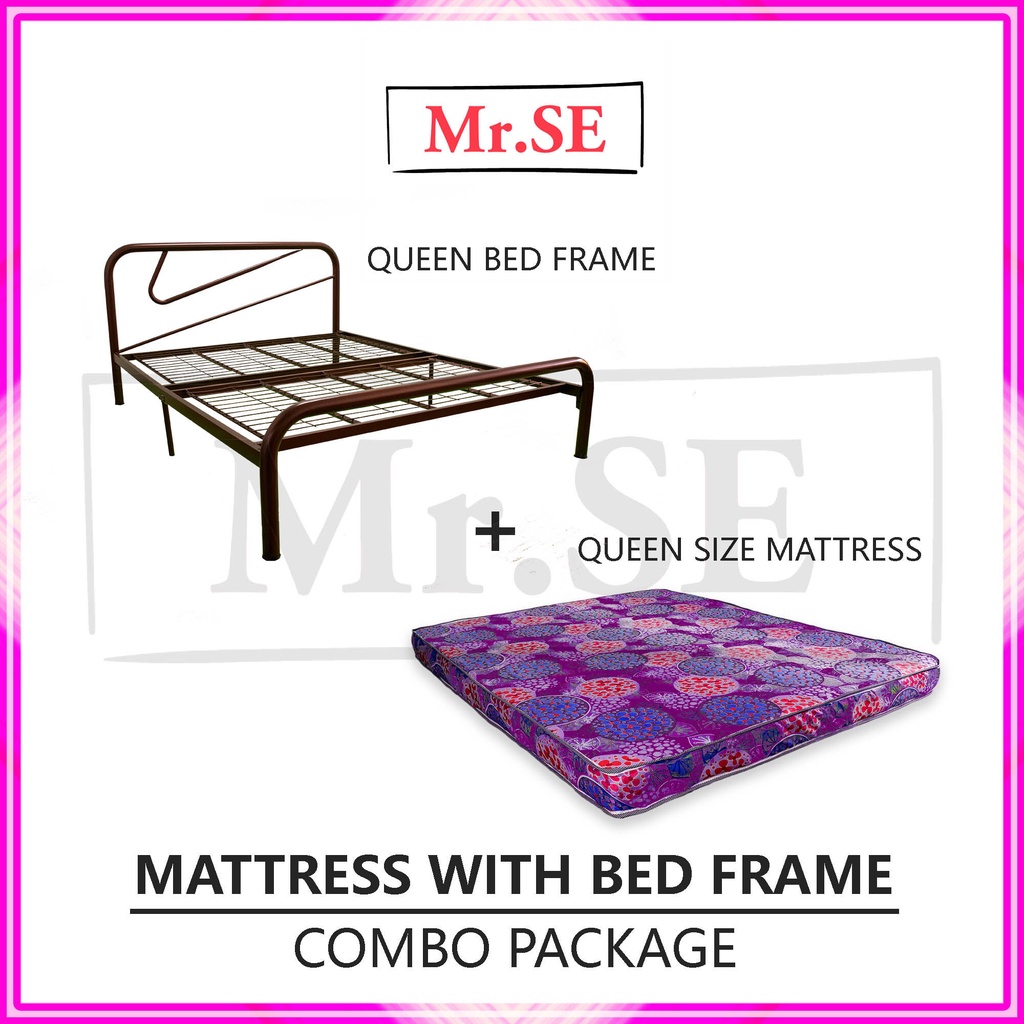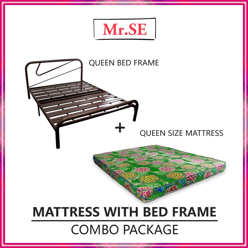 3V Powder Coat Metal Queen Bed Frame Set with Mattress Katil Tilam Queen (Normal/Super Base) CM-BF91