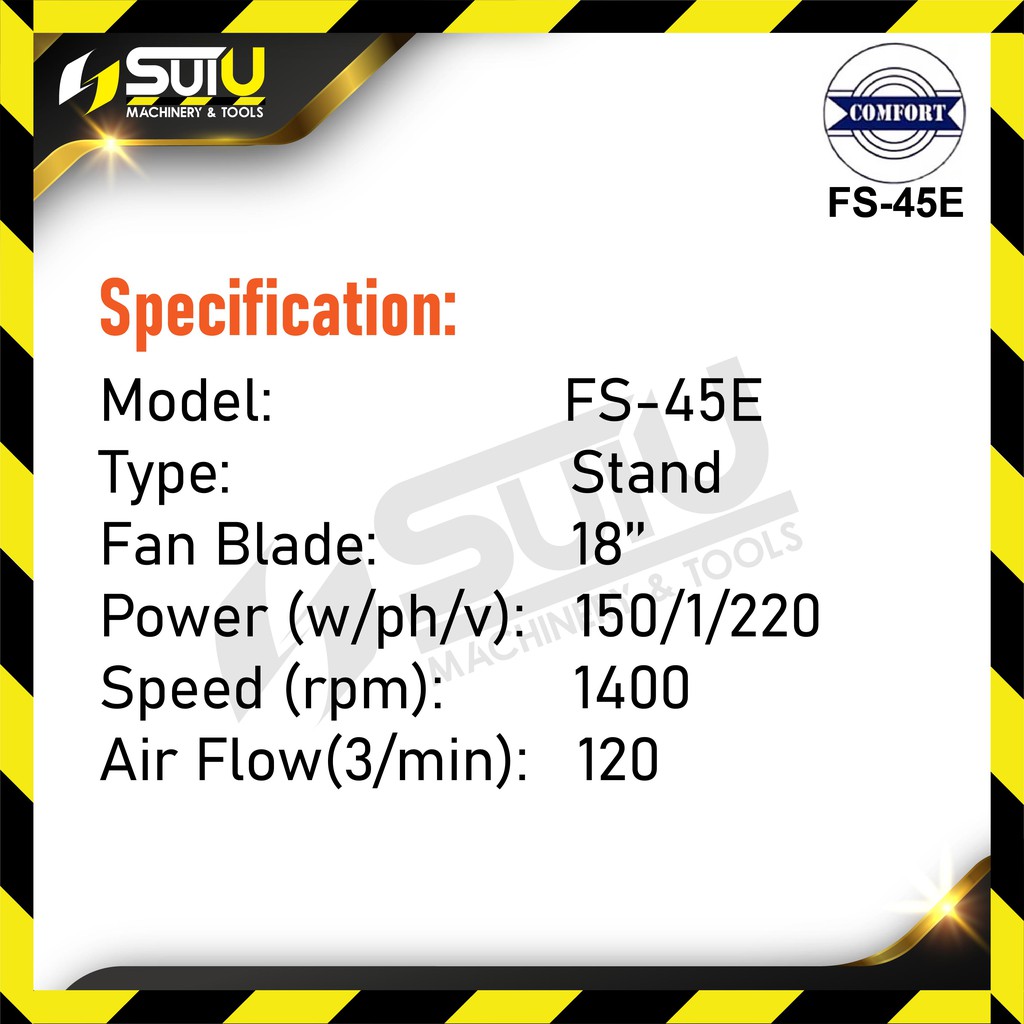COMFORT FS-45E 18 inch Heavy Duty 3-Speeds Industrial Stand Fan ( 5 Blades )