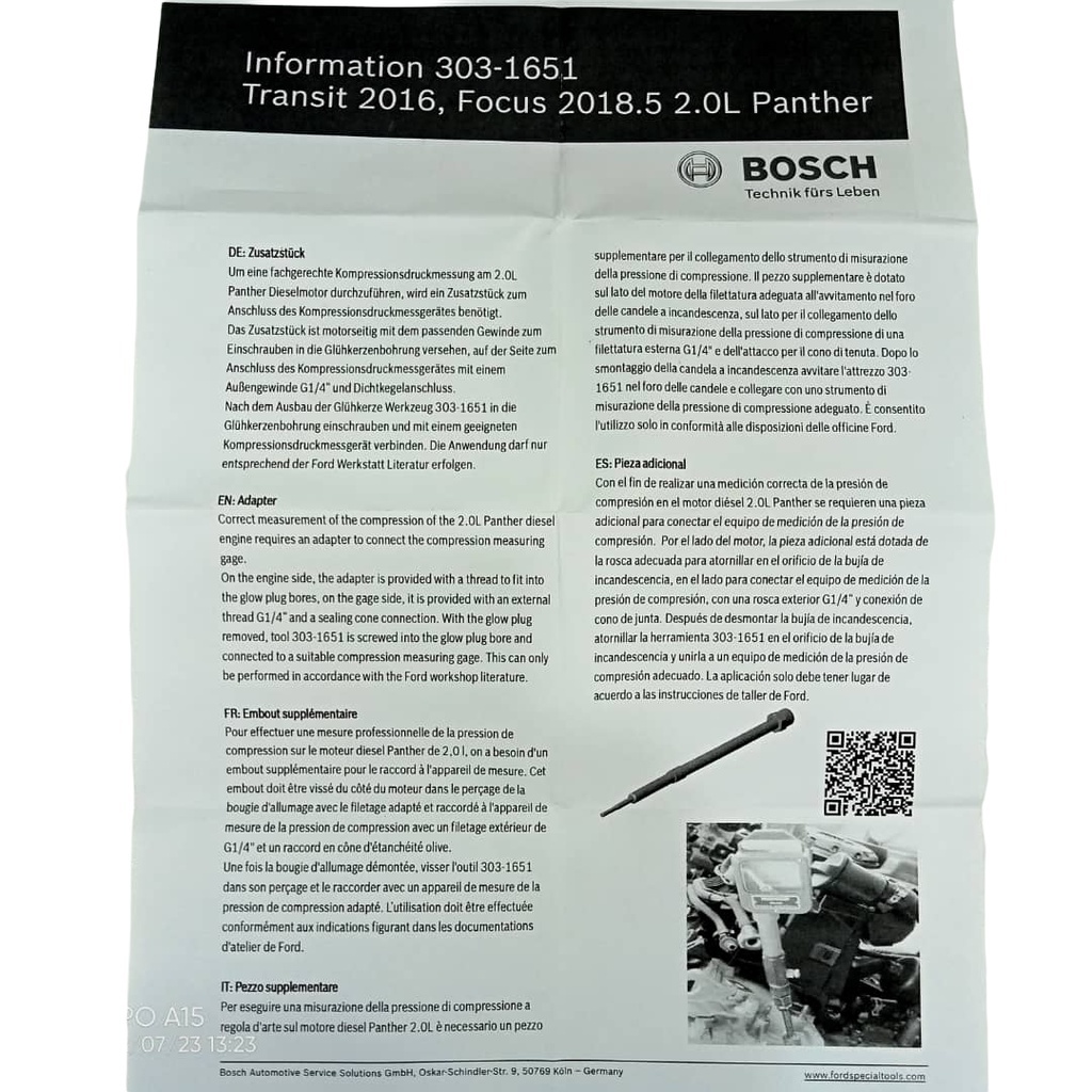 COMPRESSION TEST ADAPTER TOOL [303-1651] - FORD RANGER NEW MODEL 2018, EVEREST