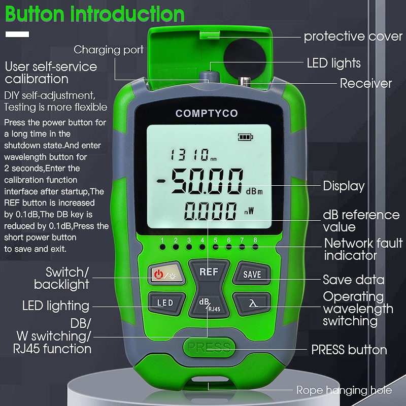 COMPTYCO OPM Handheld Mini Fiber Optical Power Meter AUA-MC5/MC7 Fiber Optical Cable Tester -70+10dbm or -50+26dbm