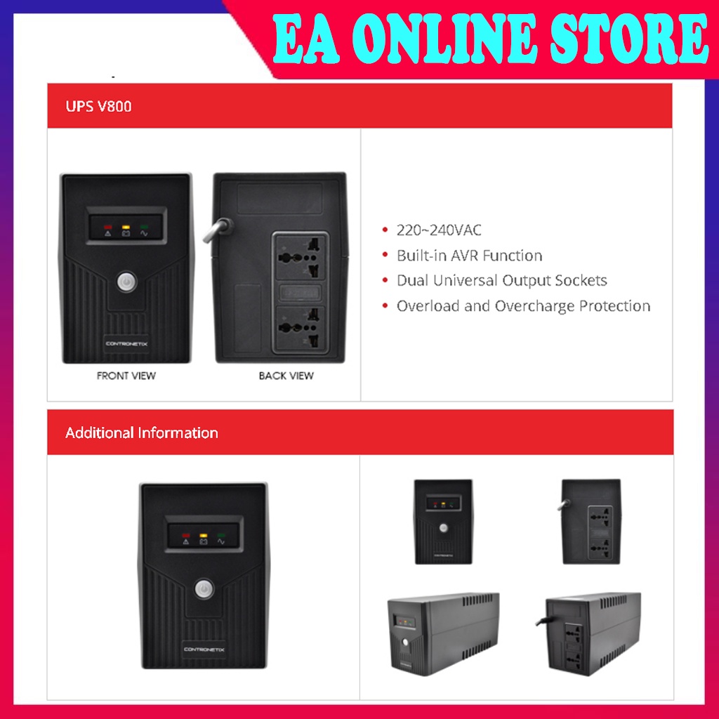 CONTRONETIX V800 POWER OFFLINE UPS 800VA Uninterruptible Power Supply for CCTV PC USE
