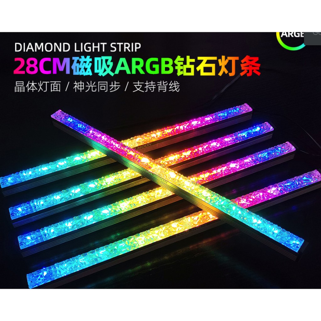 COOLMOON Computer 5V/4PIN Aura Sync RGB Fusion Cool Moon AR30 LED strip Light bar - double sided magnetic rainbow RGB