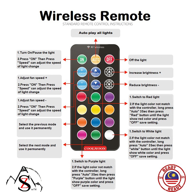 COOLMOON RGB Remote Controller 5V 3Pin Support GRB Sync Desktop with Fan Controller RF Remote Control (Ready Stock)