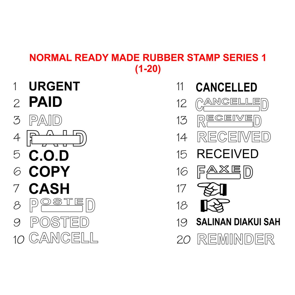 Cop Getah Biasa SERIES 1 Ready Made Rubber Stamp NORMAL Ready Made Design (SERIES 1) 1-20