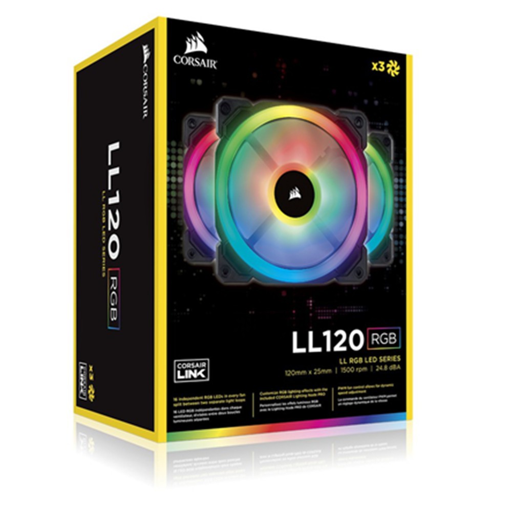 CORSAIR LL120 (BLACK/WHITE) RGB 120MM DUAL LIGHT LOOP RGB LED PWM TRIPLE PACK