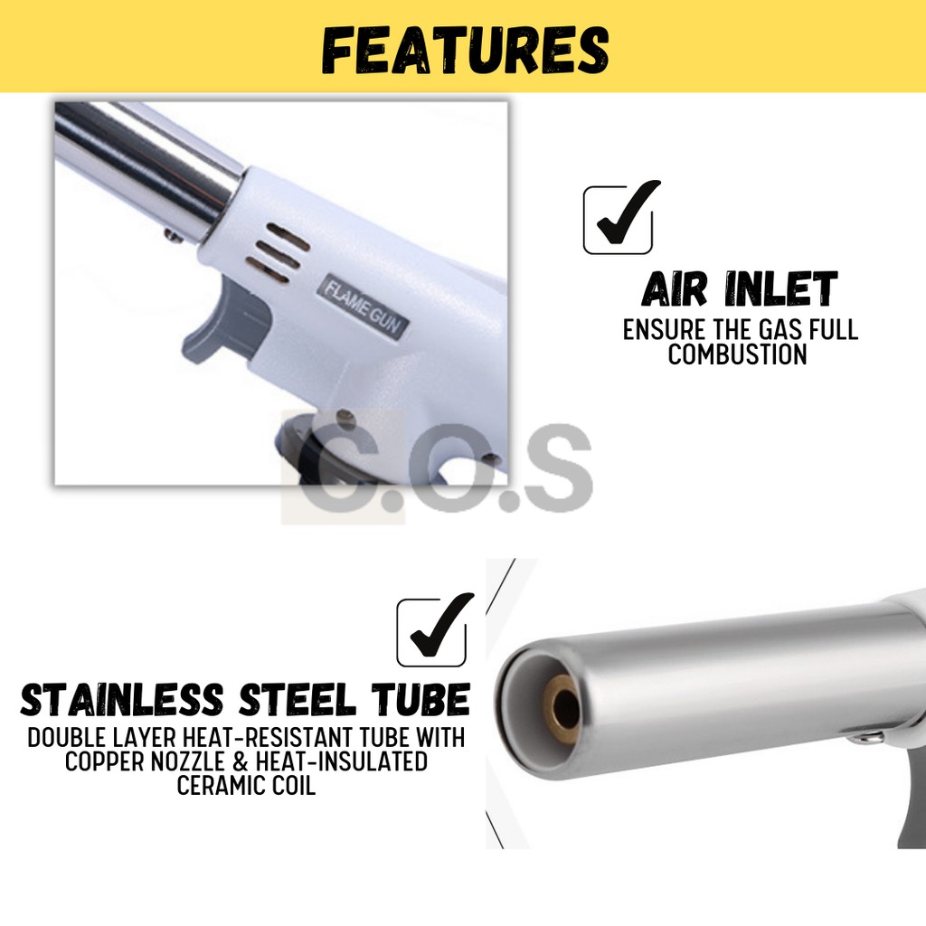 COS Portable Metal Flame Gun Butane Gas Torch Flaming Thrower Flame Burner Camping Burning Fire Maker