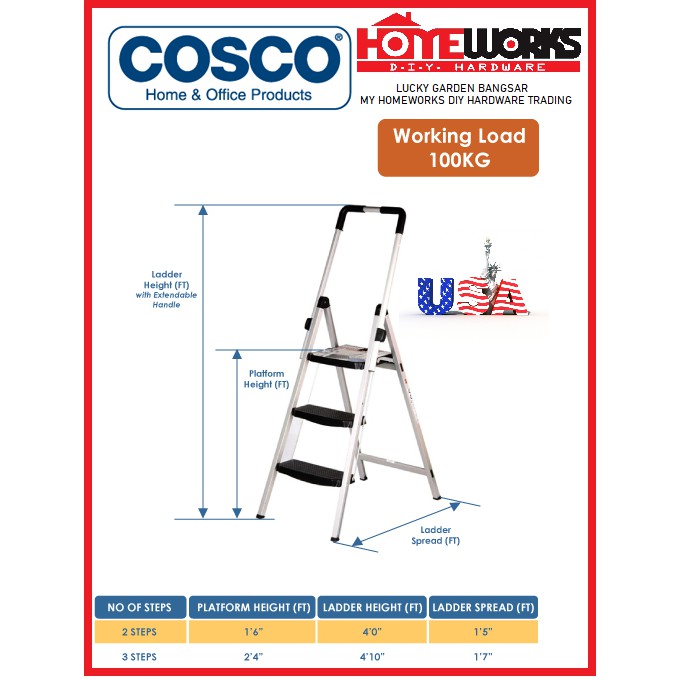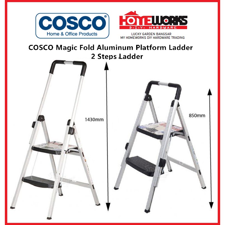 COSCO Magic Fold Platform Aluminum Step Ladder Available in 2 Steps & 3 Steps