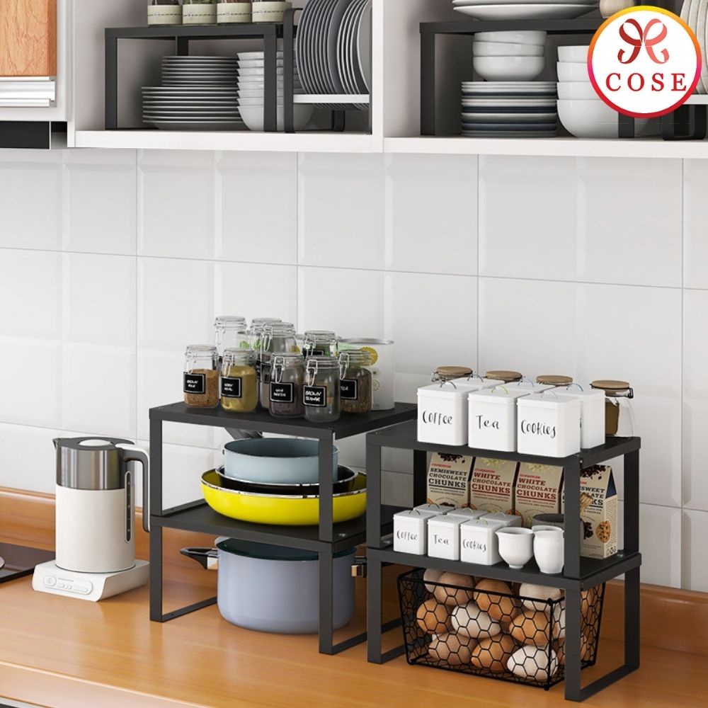COSE Kitchen Cabinet Shelf Organizers Stackable Seasoning Jar Storage Rack - Table Desktop Storage Rack Table Organizer