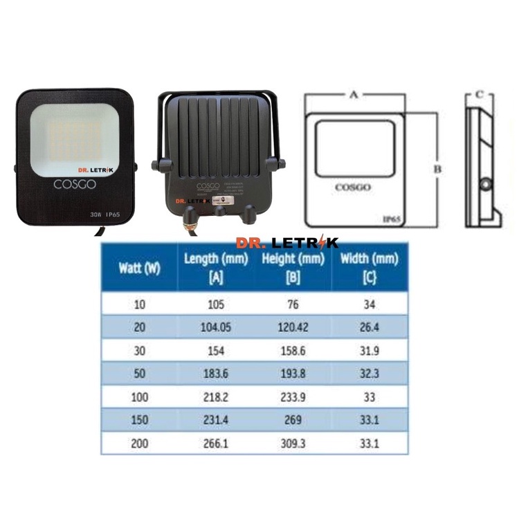 ( SIRIM ) 20W/30W COSGO FLOOD LIGHT LED SPOTLIGHT WarmWhite 3000K