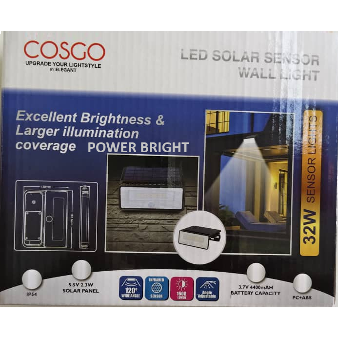 COSGO LED 32W SOLAR SENSOR WALL LIGHT (WARM WHITE)