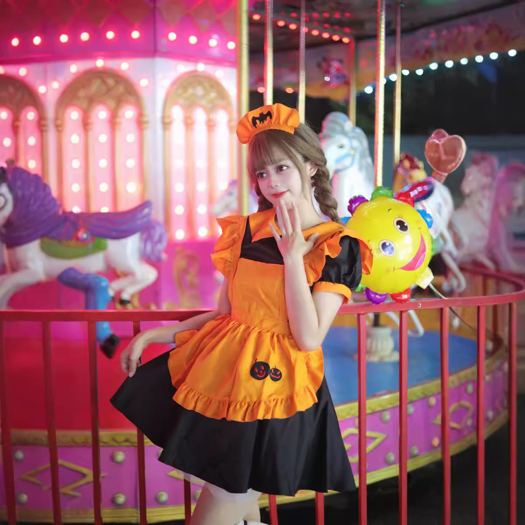 COSPLAY Halloween embroidered maid costume pumpkin maid costume bat vampire maid