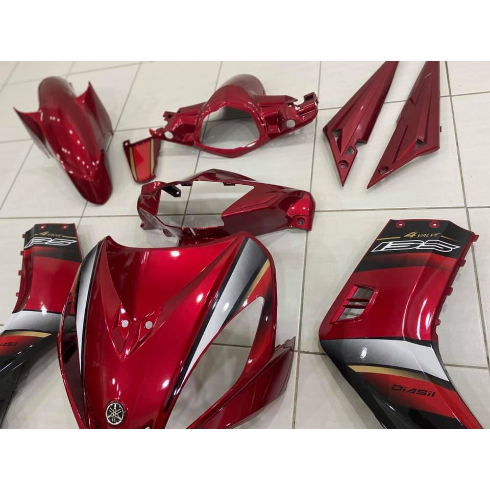 COVERSET BODYSET LC LC135 V1 MERAH MAROON DRMK GOLD ORIGINAL 100% HONG LEONG YAMAHA HLY / M MATE STRIPE SIAP TAMPAL