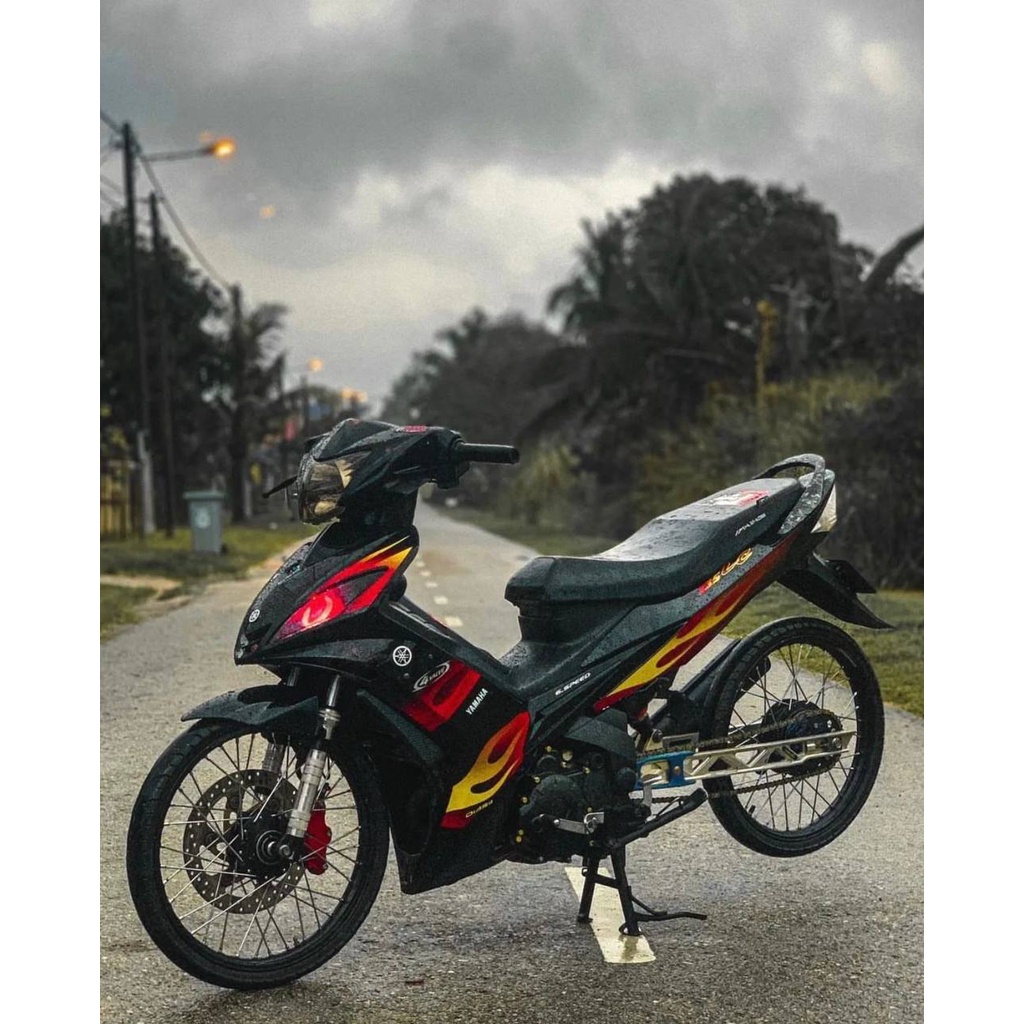 COVERSET BODYSET YAMAHA LC LC135 V1 HITAM API MERAH ORIGINAL HONG LEONG YAMAHA HLY STRIPE SIAP TAMPAL – FREE EMBLEM