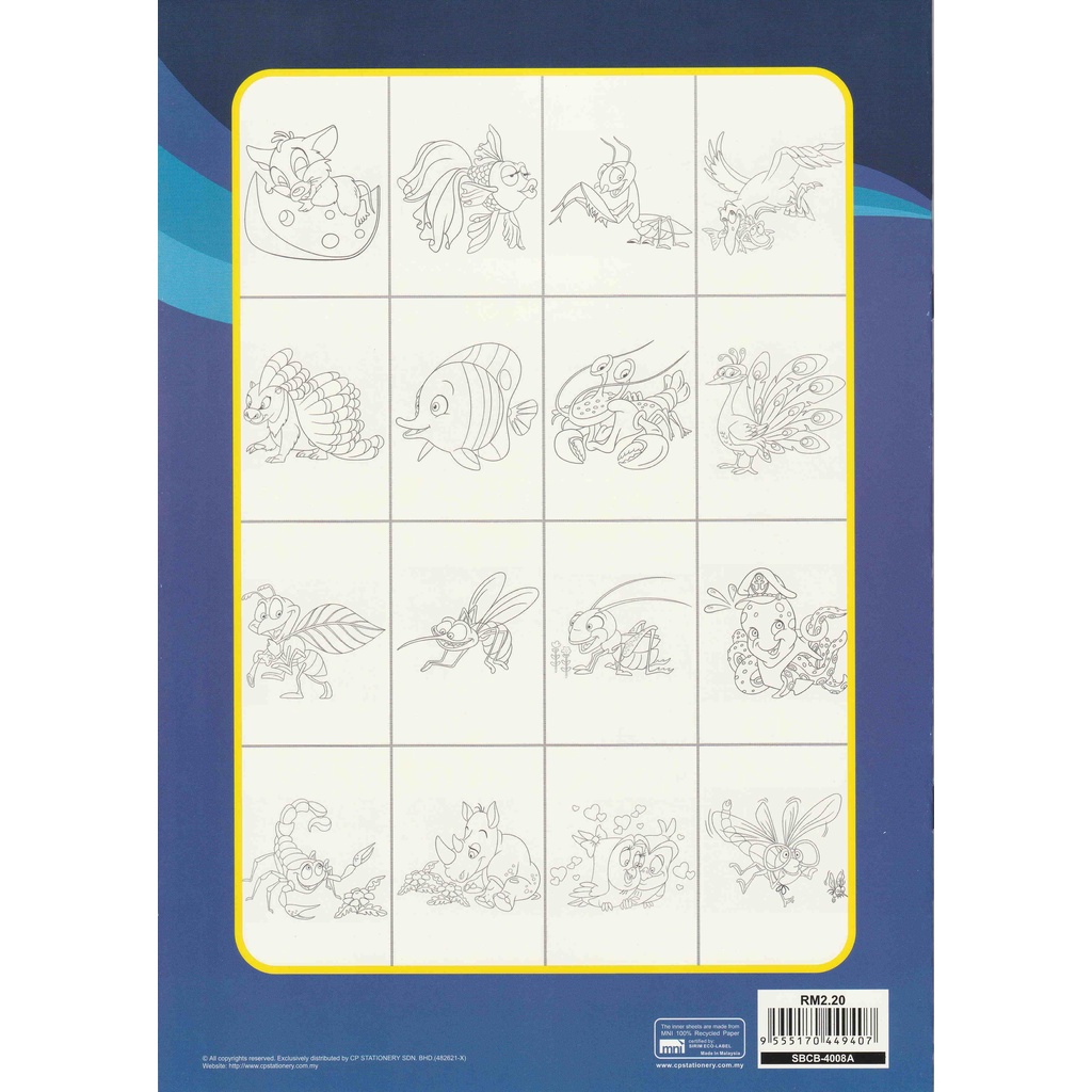 Coloring Book A4 Colouring Book 16 Pictures Animal Fruit Transportation Activity (Buku Merwarna)