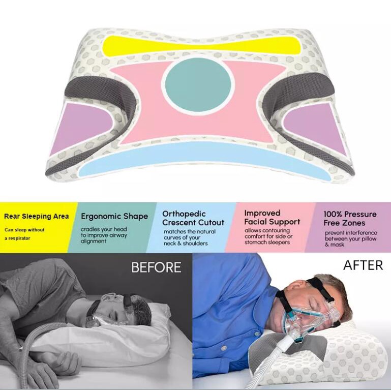 CPAP Adjustable Funtion Contour Pillow Memory Foam Medical CPAP Pillow for Sleep Apnea Side Sleep Wrinkle Face Pillow