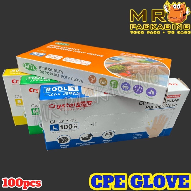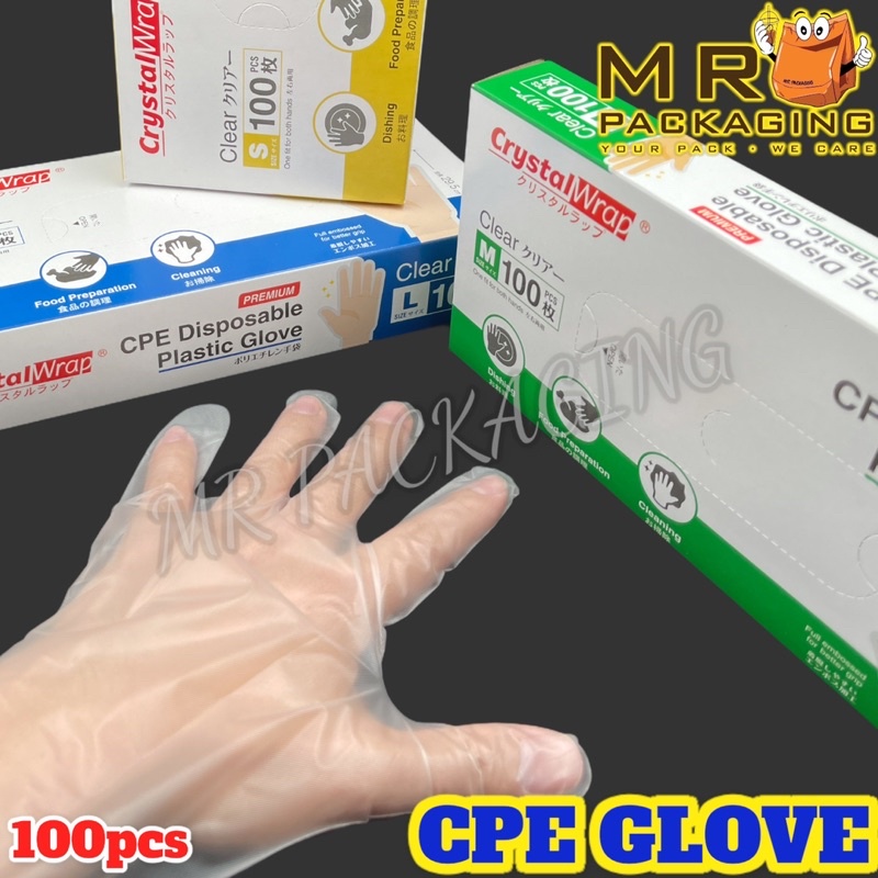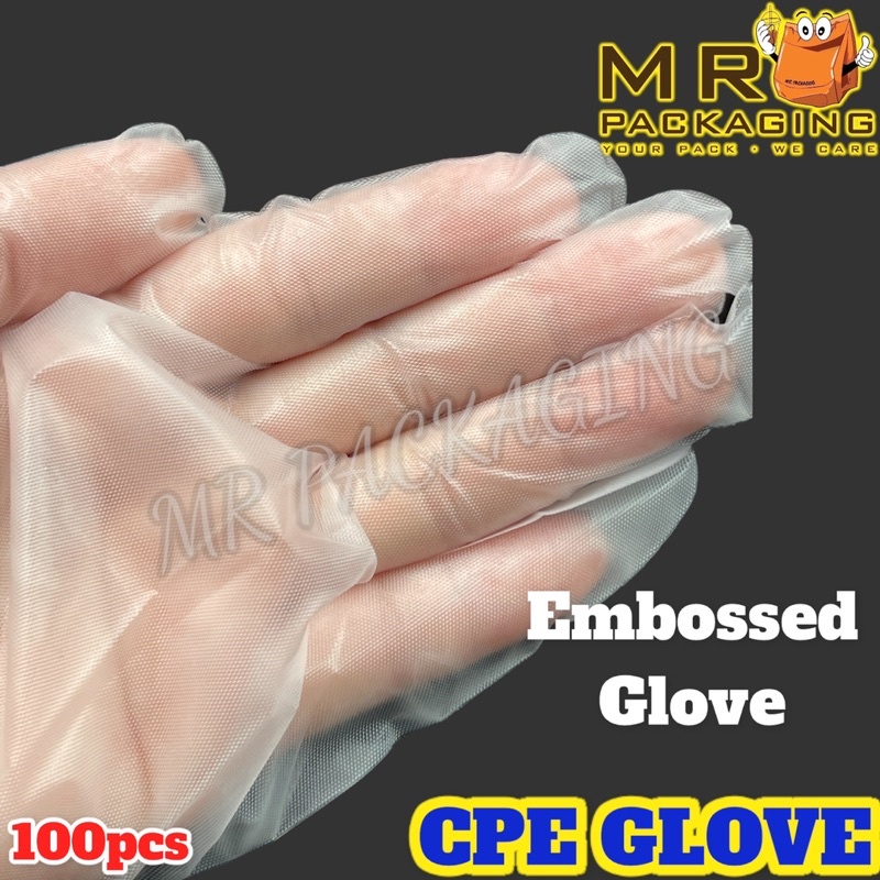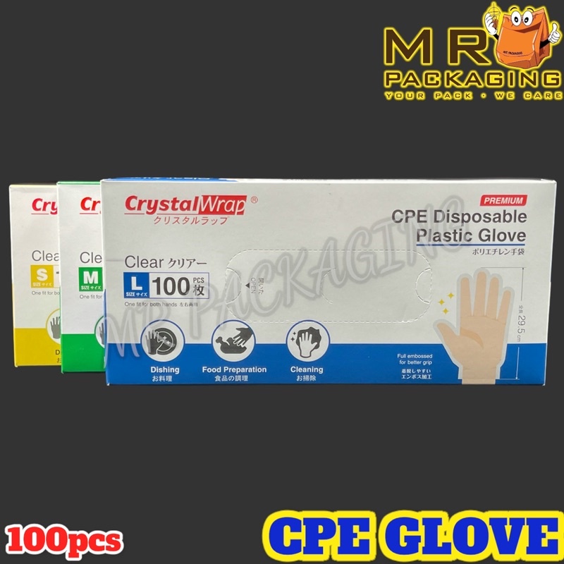 CPE Premium Plastic Glove [ S / M / L ] Disposable Polyethlene Embossed Plastic Sarung Tangan Crystal Wrap MTL