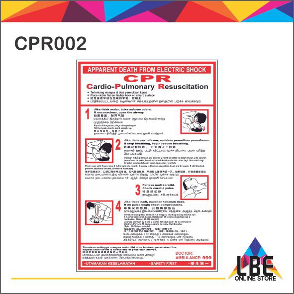 CPR ELECTRIC SHOCK CHART Sign (400mm x 600mm)